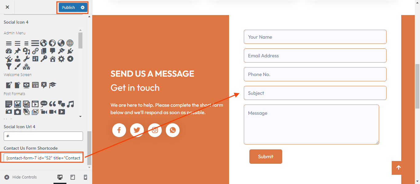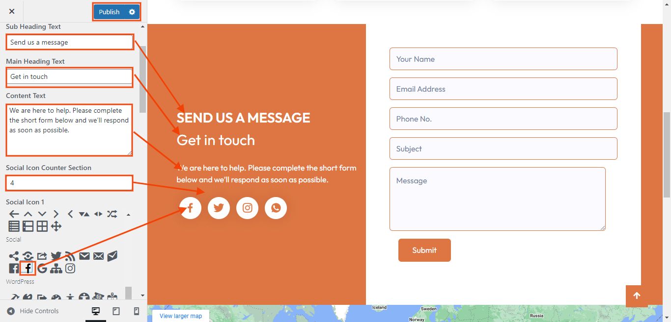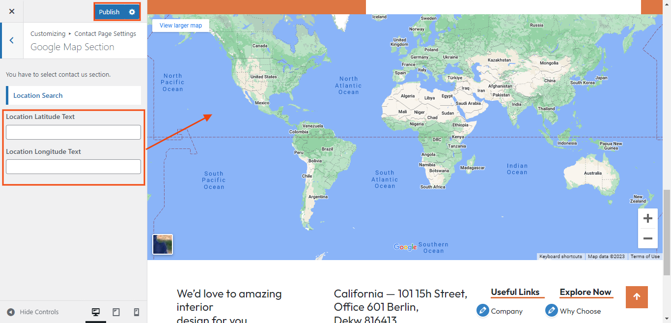 In the Dashboard, go to Appearance >> Customize >> Contact Page Settings >> Contact Form and Location Section