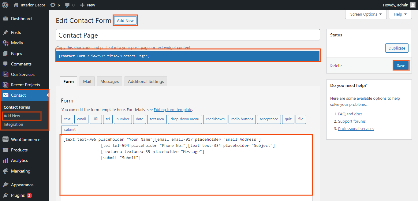 Important Step:- Contact Form-7 plugin is necessary for creating a contact form.