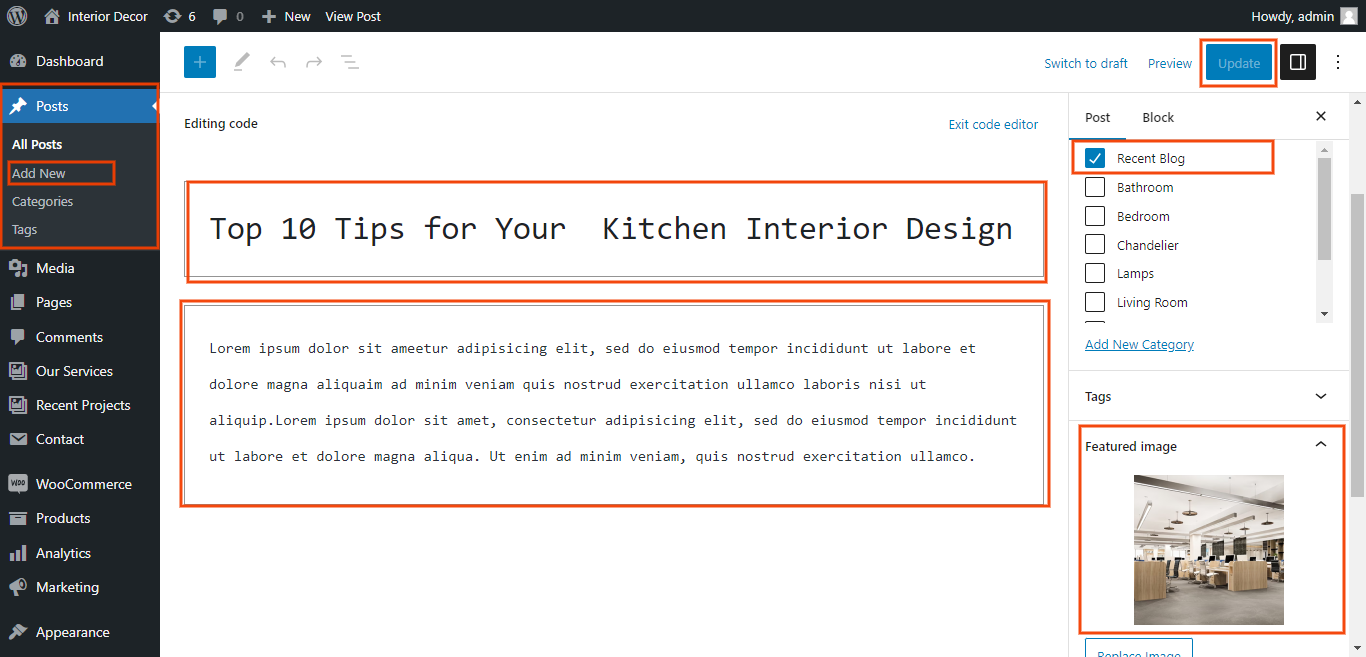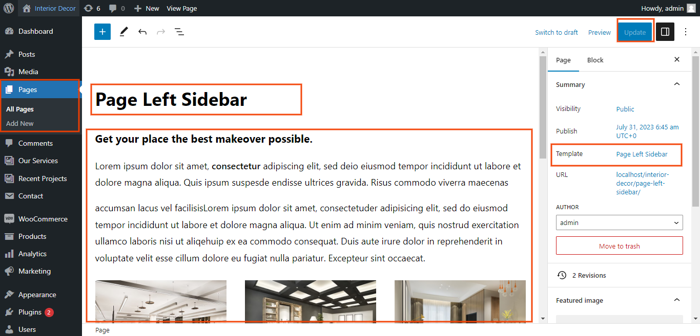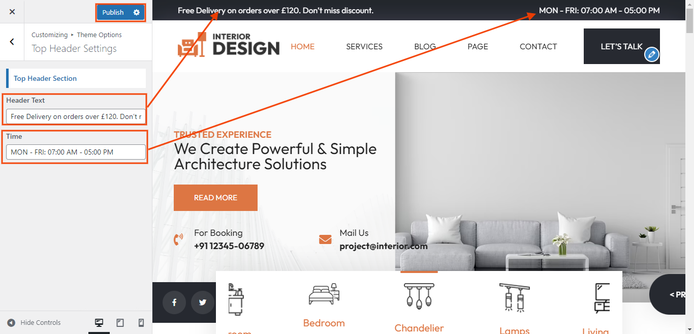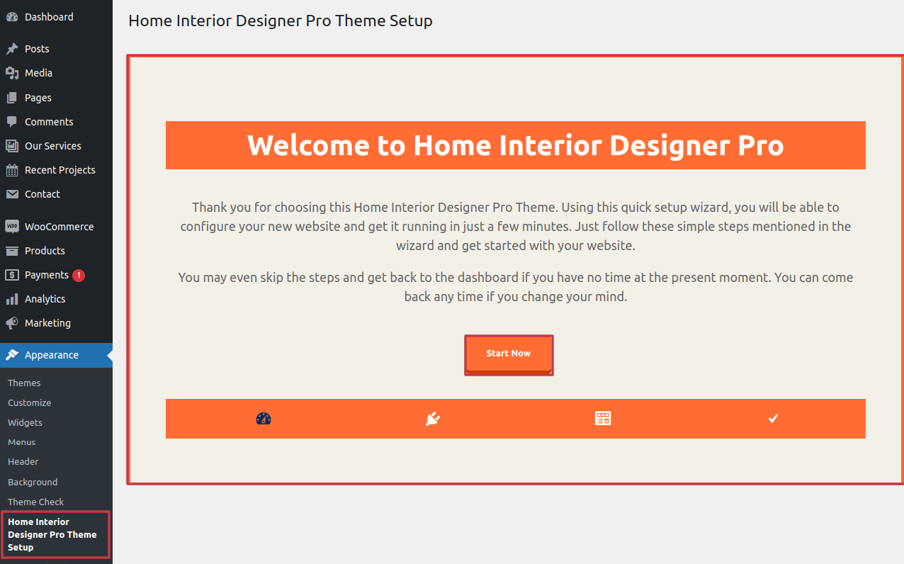 In the Dashboard, go to Appearance >> Home Interior Designer Pro Themes Setup