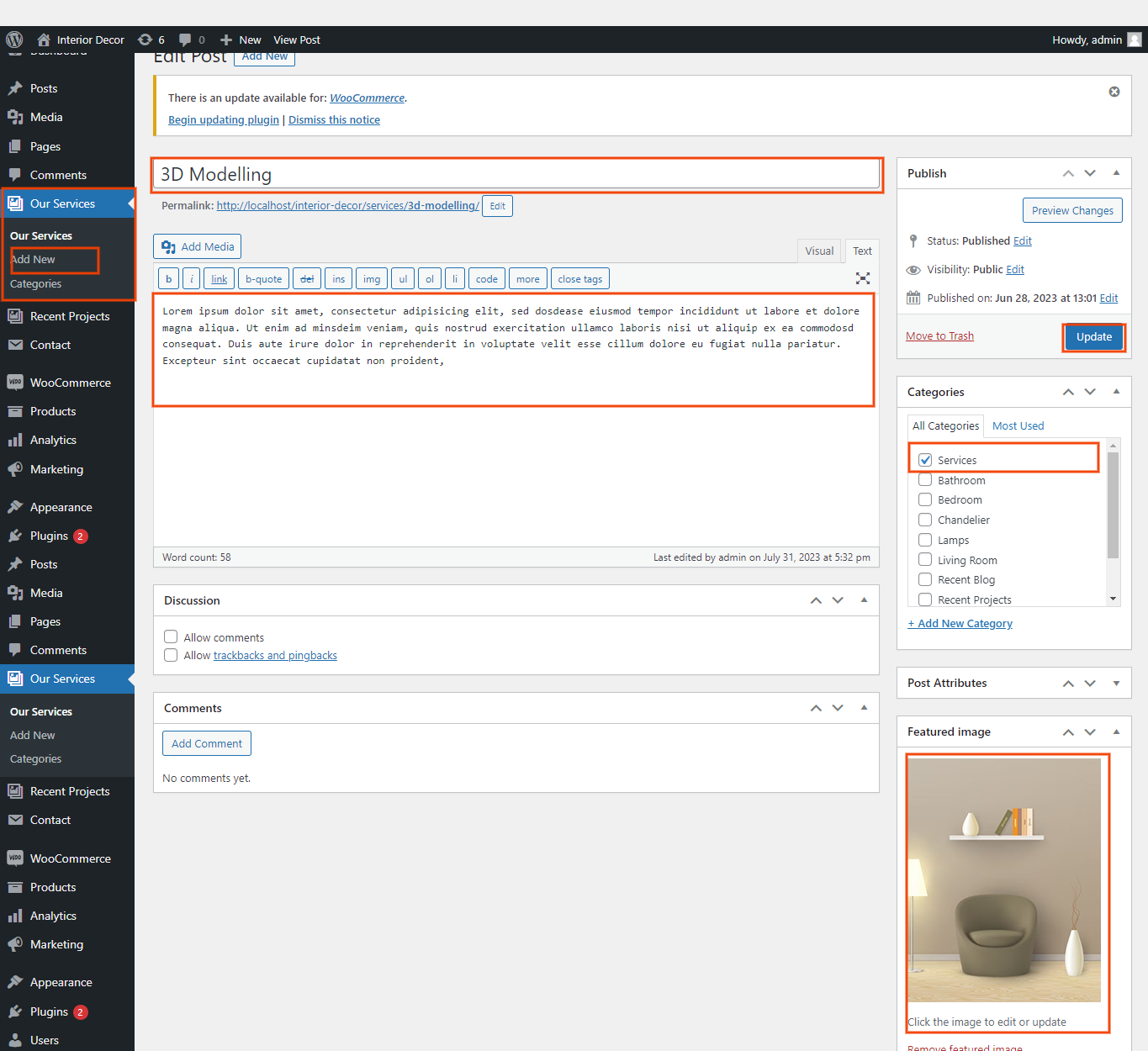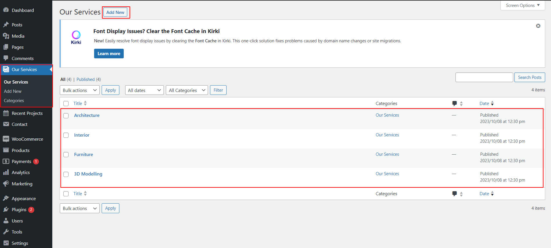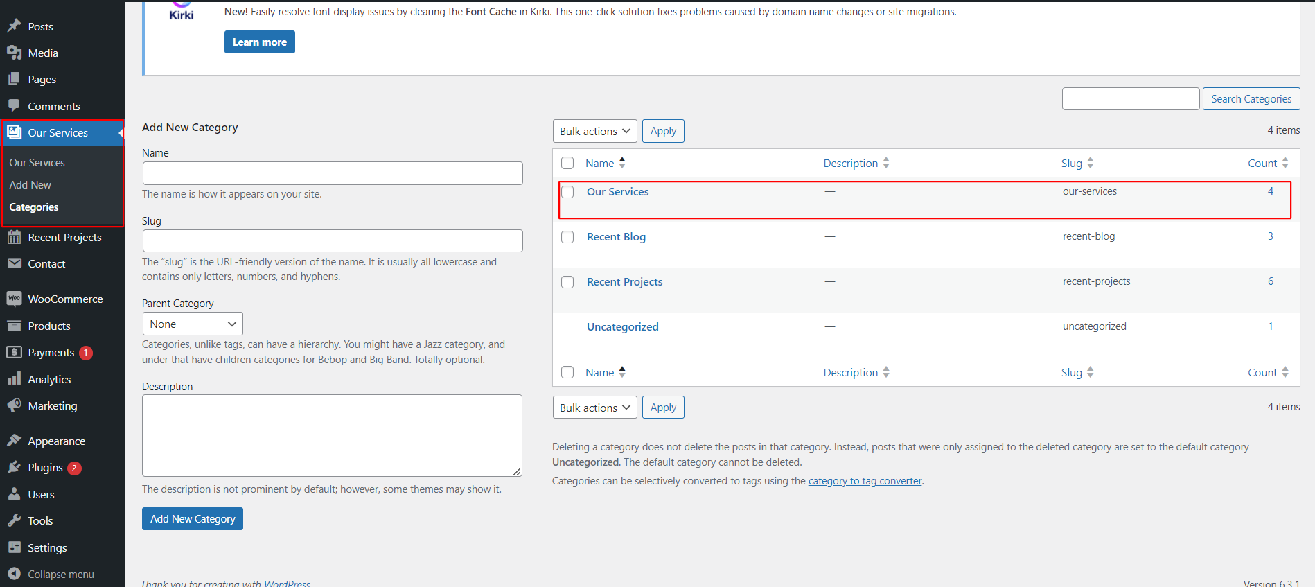 In the Dashboard, go to Our Services >> Categories >> Add New