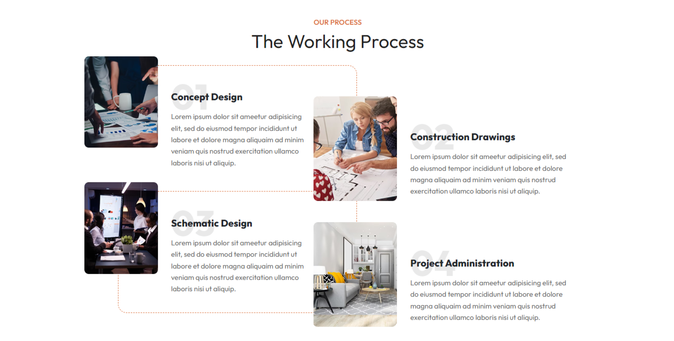 You can set sub heading , main heading , and counter section for each Working Process settings