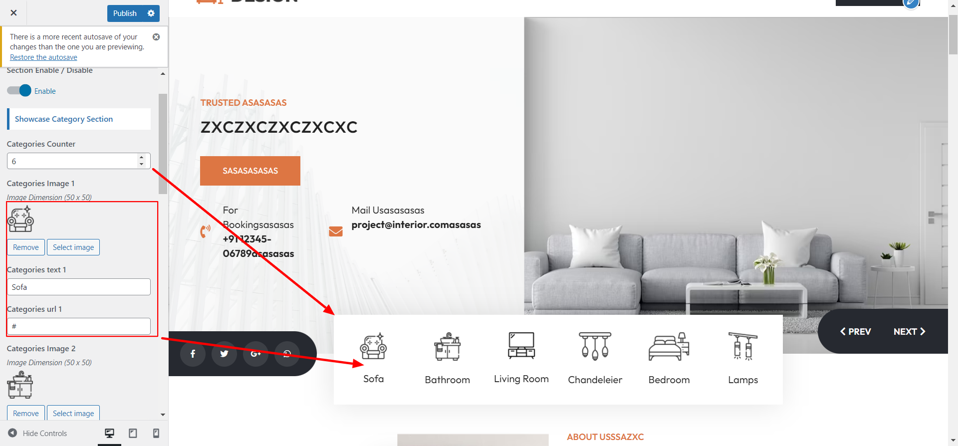 You can set Call Text,Number and Mail Text and Mail Id and Set Social icon. You can choose from this options for each slider option.