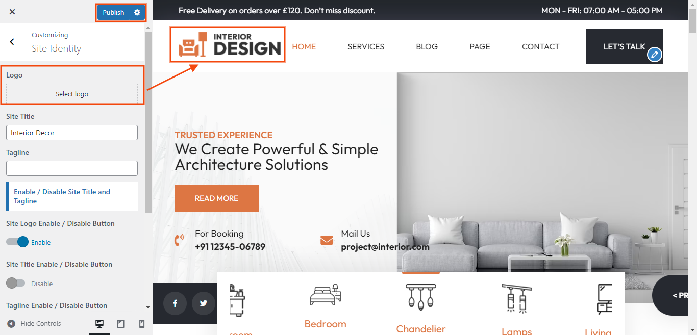 In order to proceed with Theme Logo setup, you can set site title and tagline, follow the instructions given below.