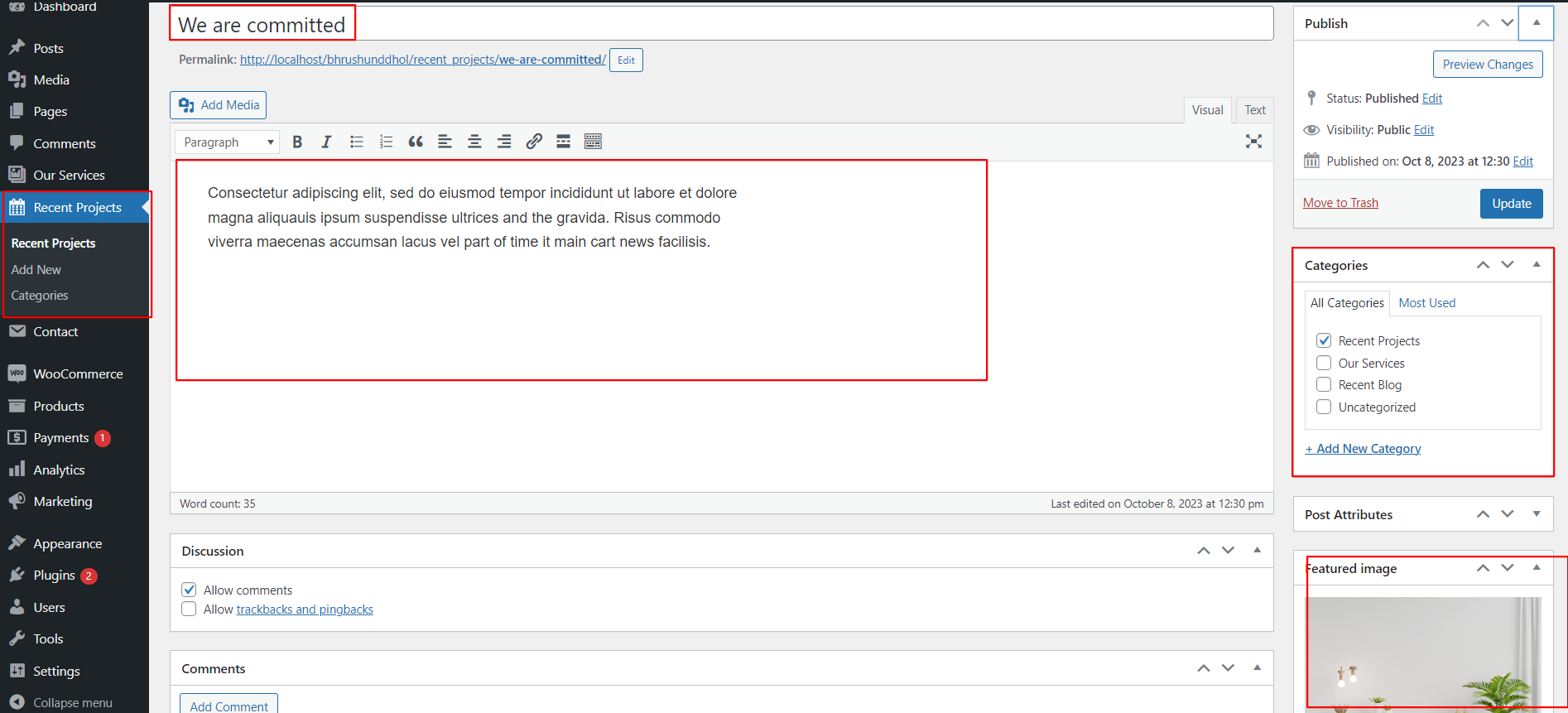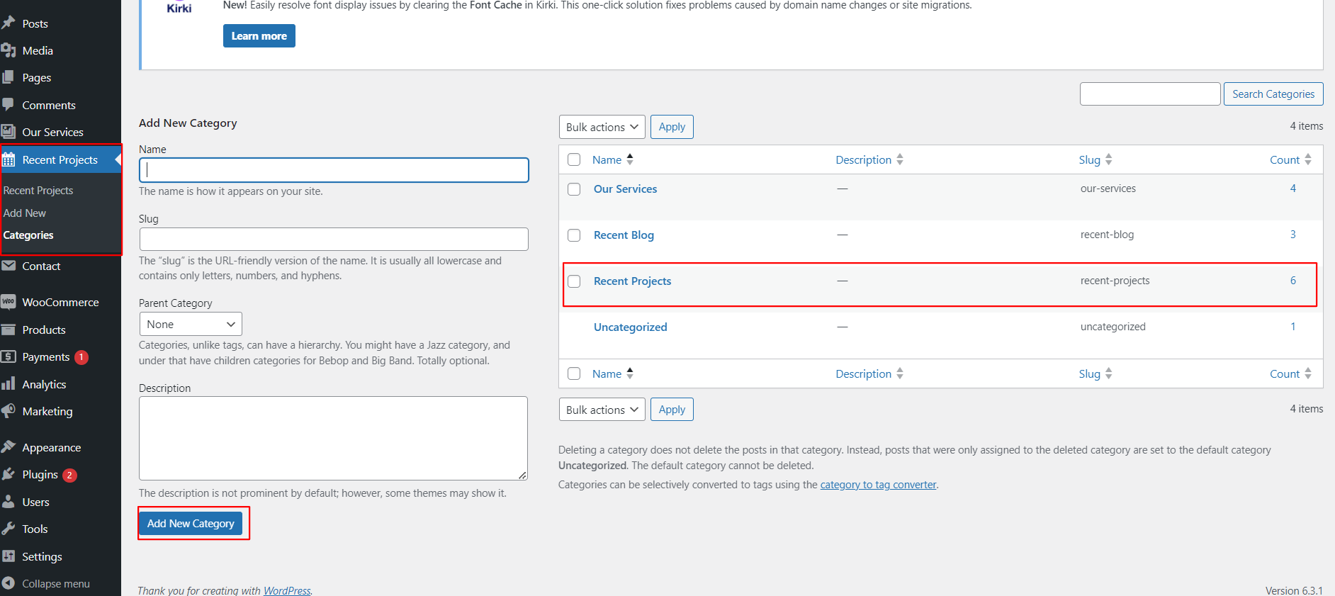 In the Dashboard, go to Recent Project >> Categories >> Add New