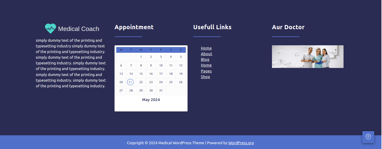 There are four columns in the footer. Any widget can be added there.