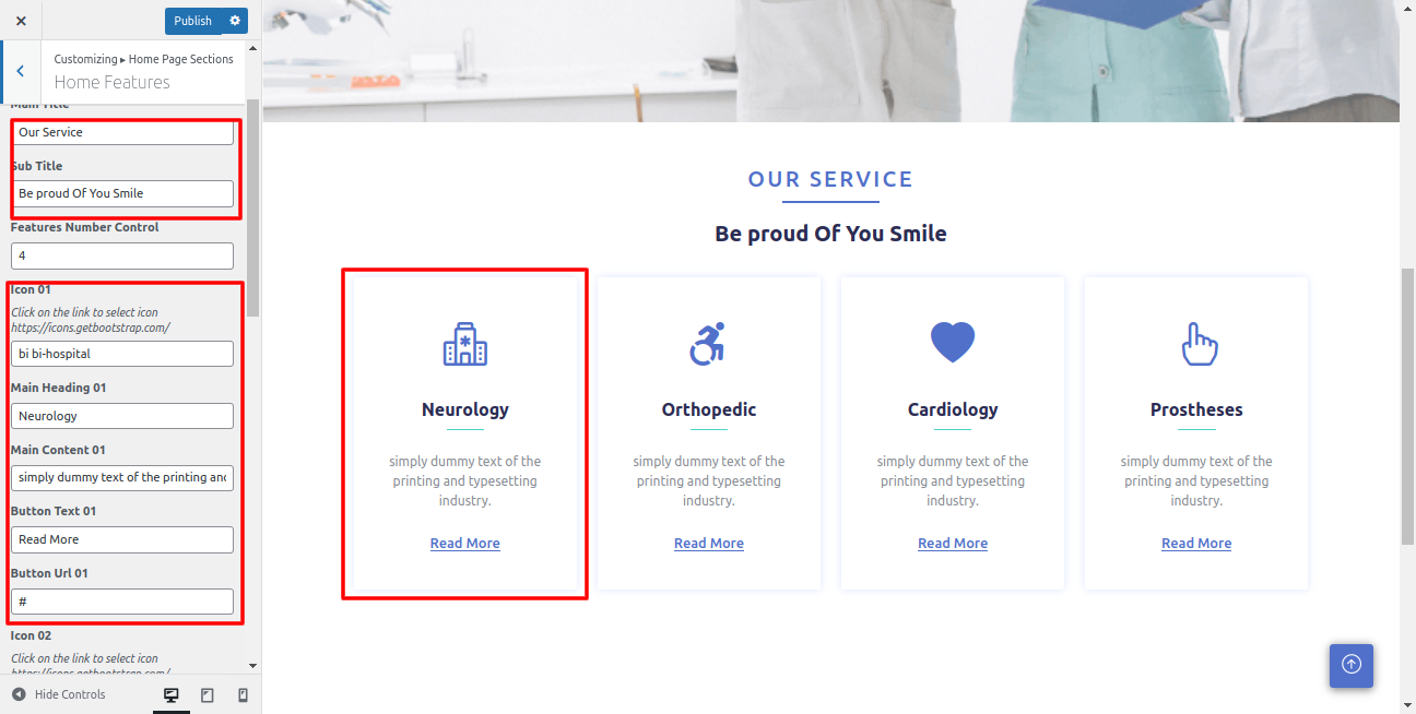 In the dashboard, visit Appearance -- Customize -- Home Services