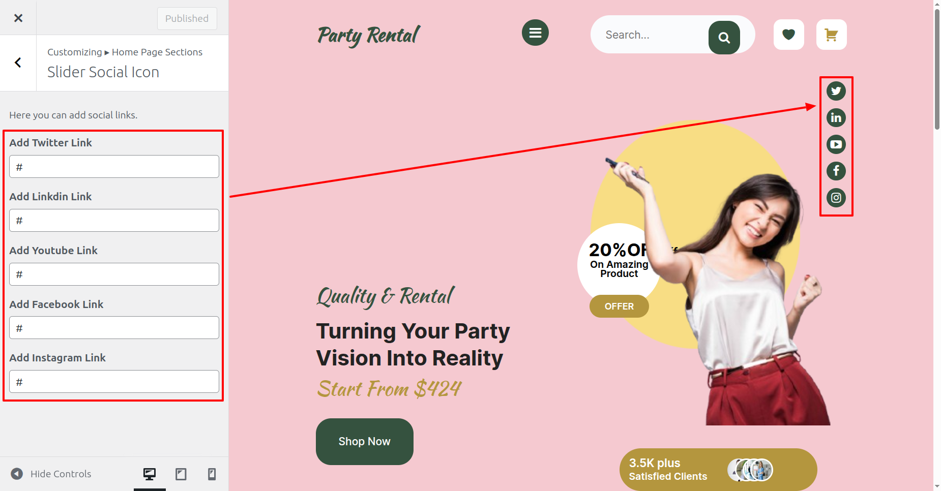 Proceed with Theme Slider Social Icon Settings, proceed as described below.