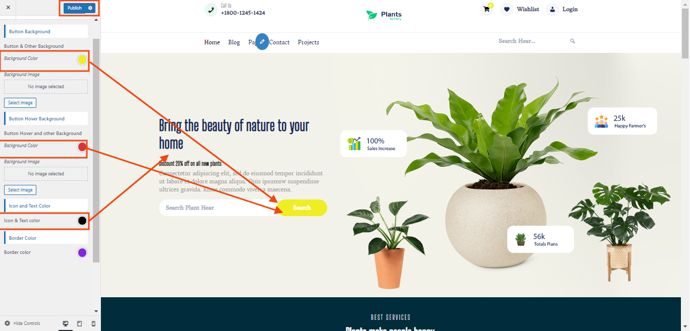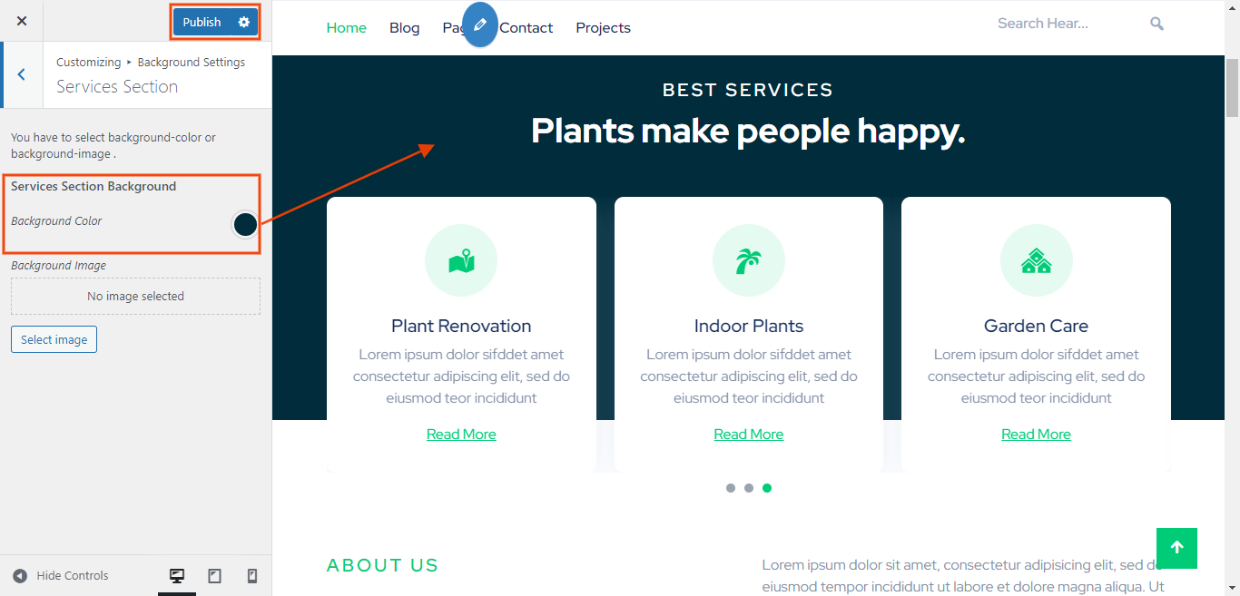 You can set services icon title and services context and Button text button url of section. You can choose from this options for each services settings.