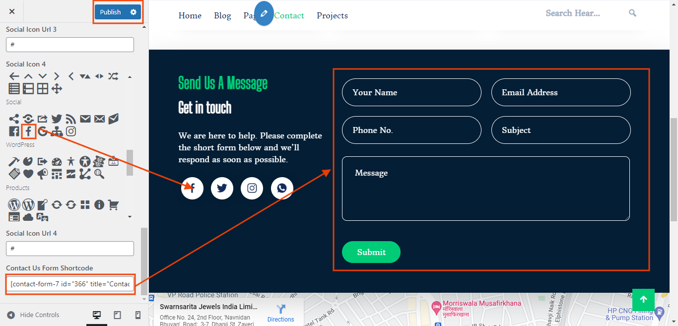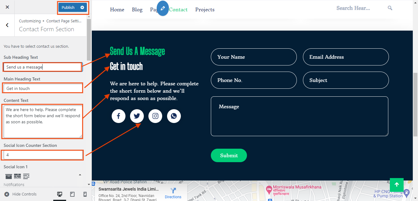 In the Dashboard, go to Appearance >> Customize >> Contact Page Settings >> Contact Form and Location Section