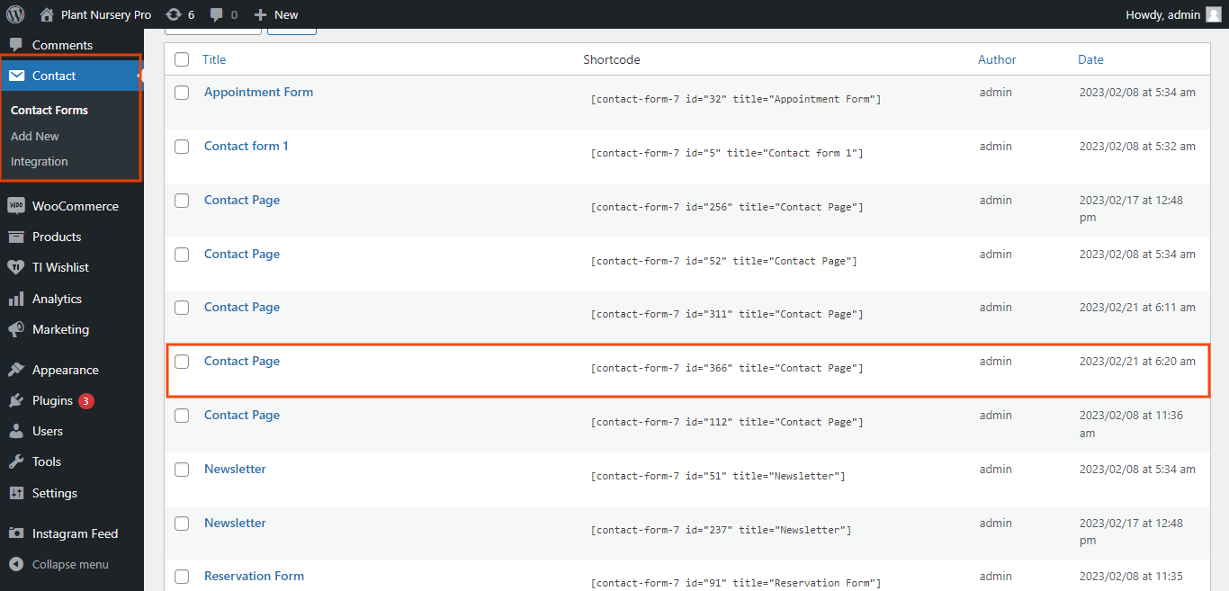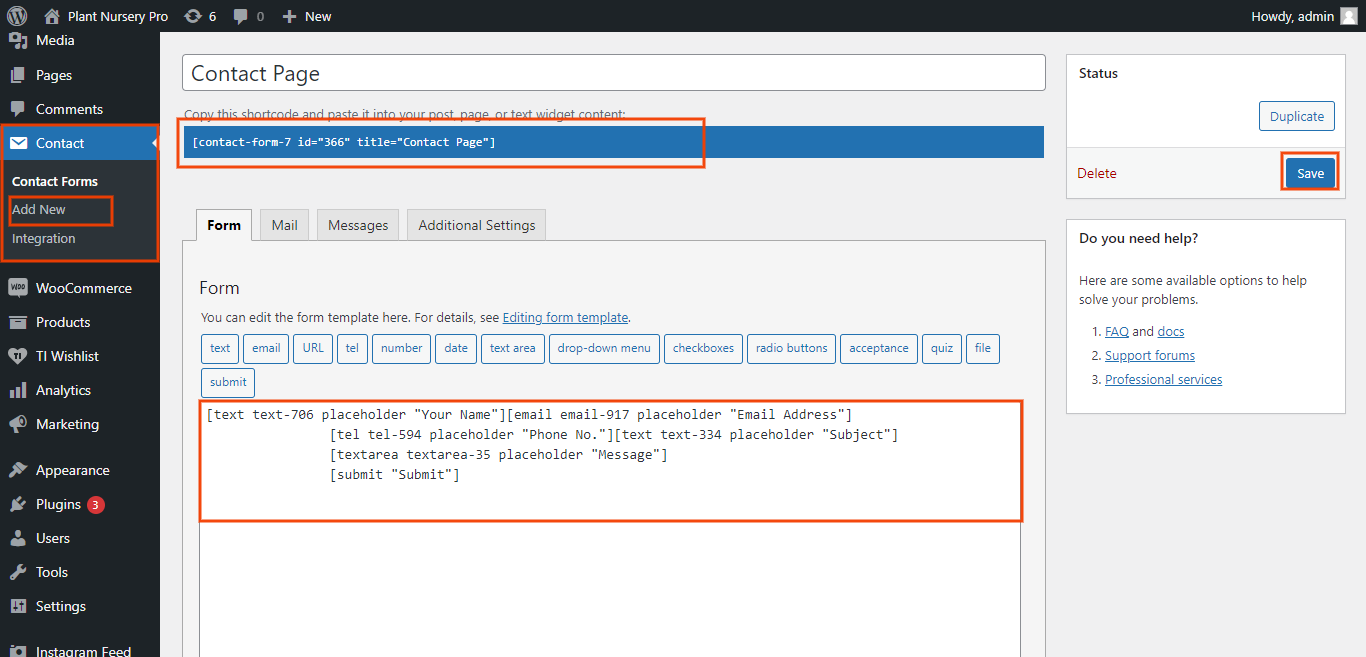 Scroll to Form and give this new contact form a name. You can make modifications to contact form template from here.