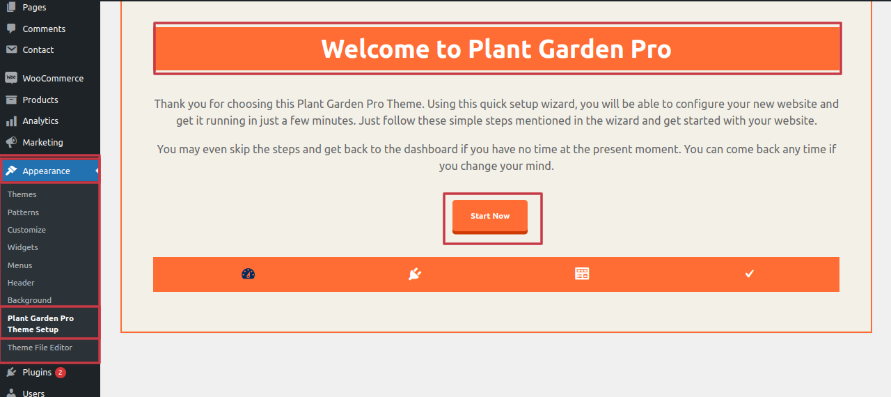 Once you are on the Plant Garden Pro themes setup, click on the start button.