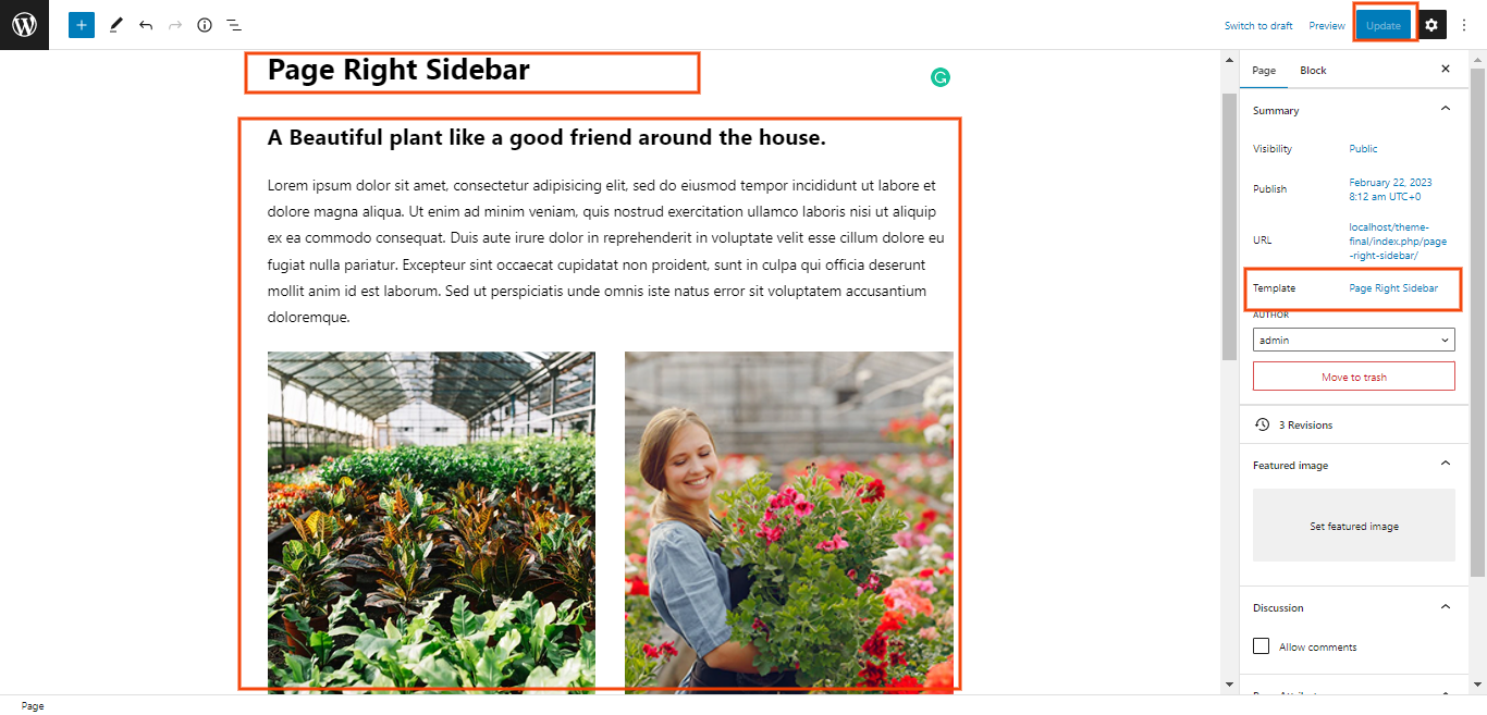 Follow these instructions to setup page right sidebar page.