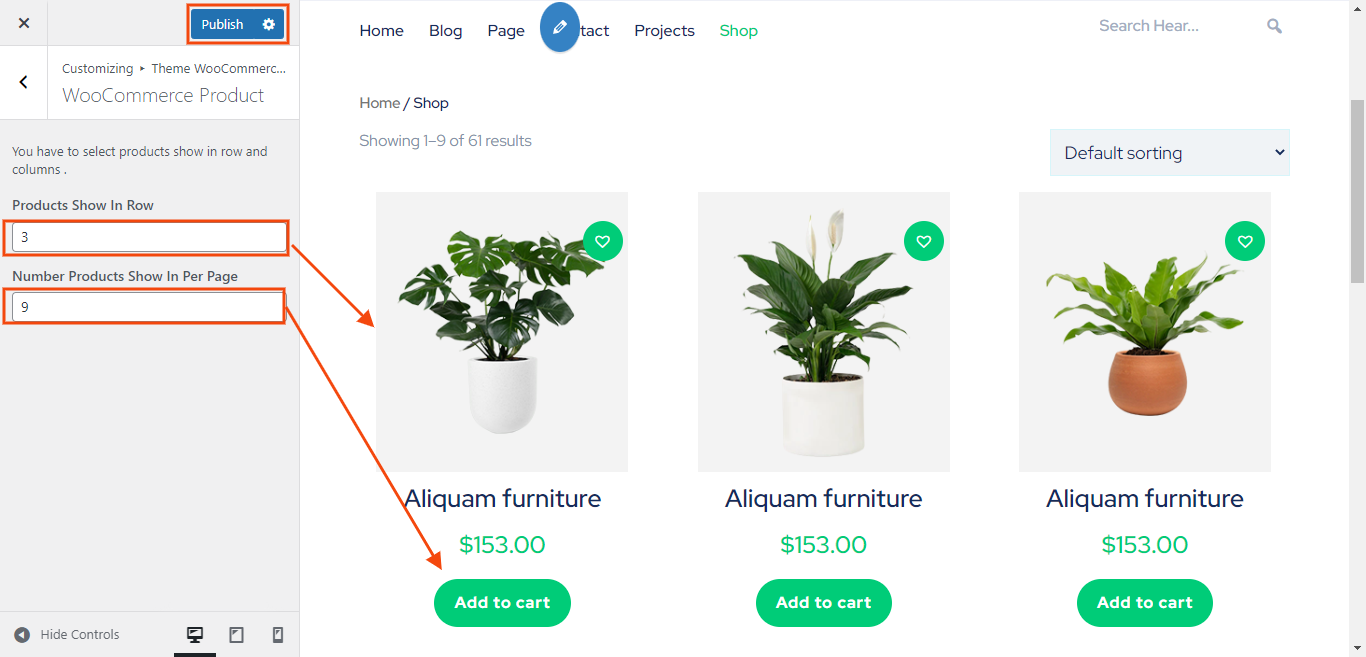 In the Dashboard, go to Appearance >> Customize >> Theme WooCommerce Settings >> WooCommerce Product
