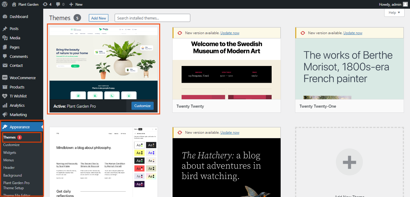 In the Dashboard, go to Appearance >> Plant Garden Pro Themes Setup