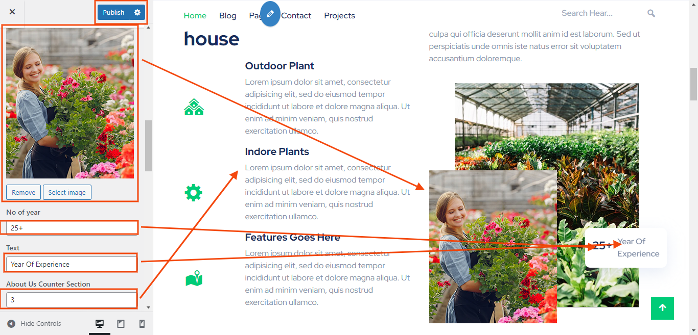 You can set number of year and text and select image for each About Us settings