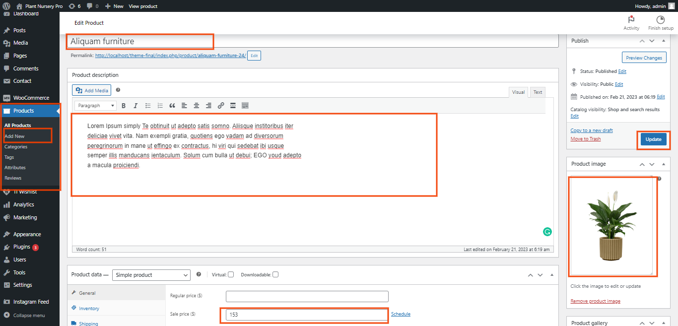 In the Dashboard, go to Products >> Add New