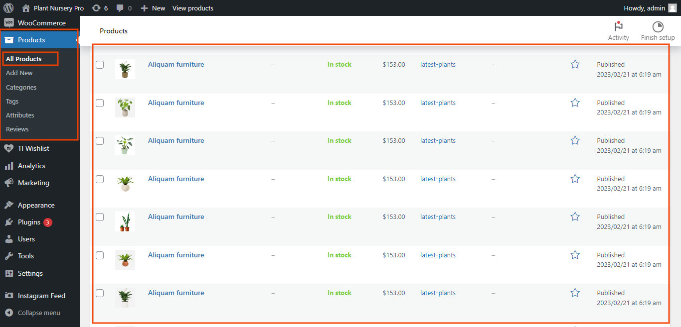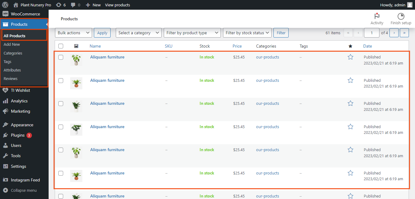 In the Dashboard, go to Products >> All Product