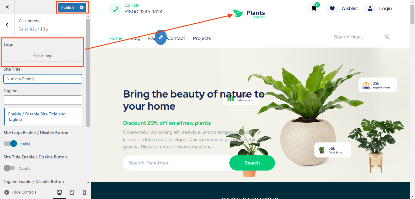 In order to proceed with Theme Logo setup, you can set site title and tagline, follow the instructions given below.