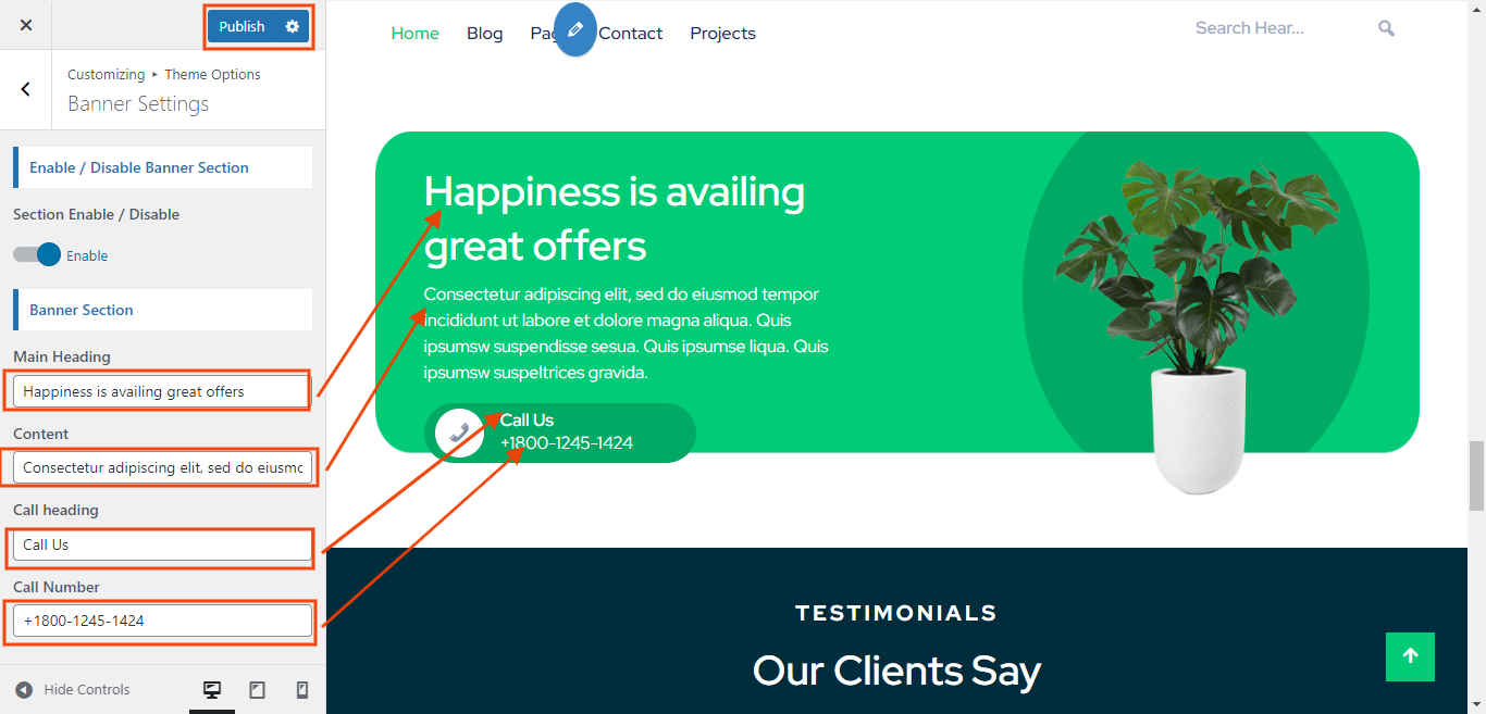 You can set main heading , content , and call heading and call number for each Banner settings