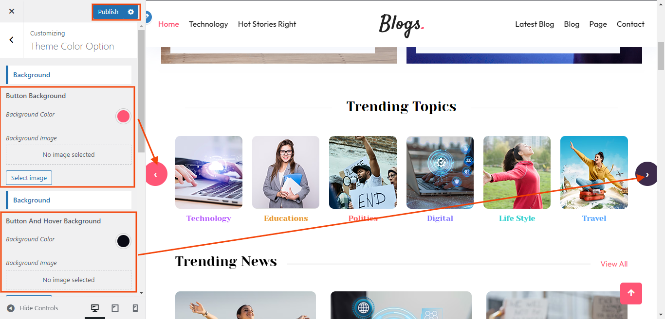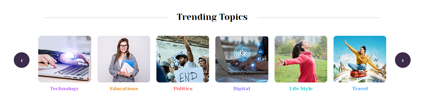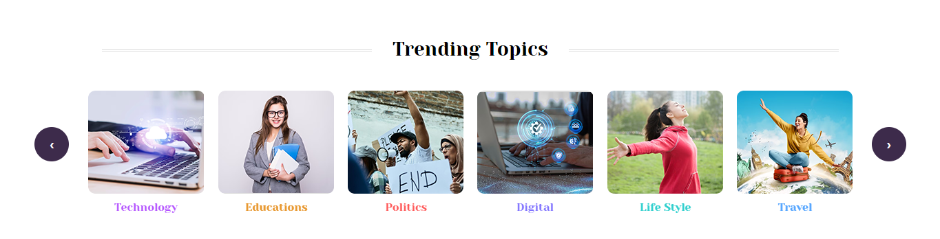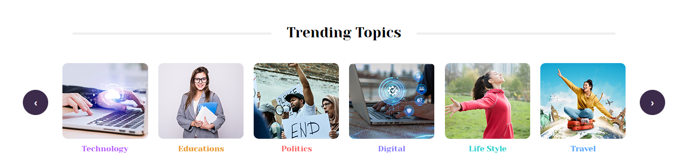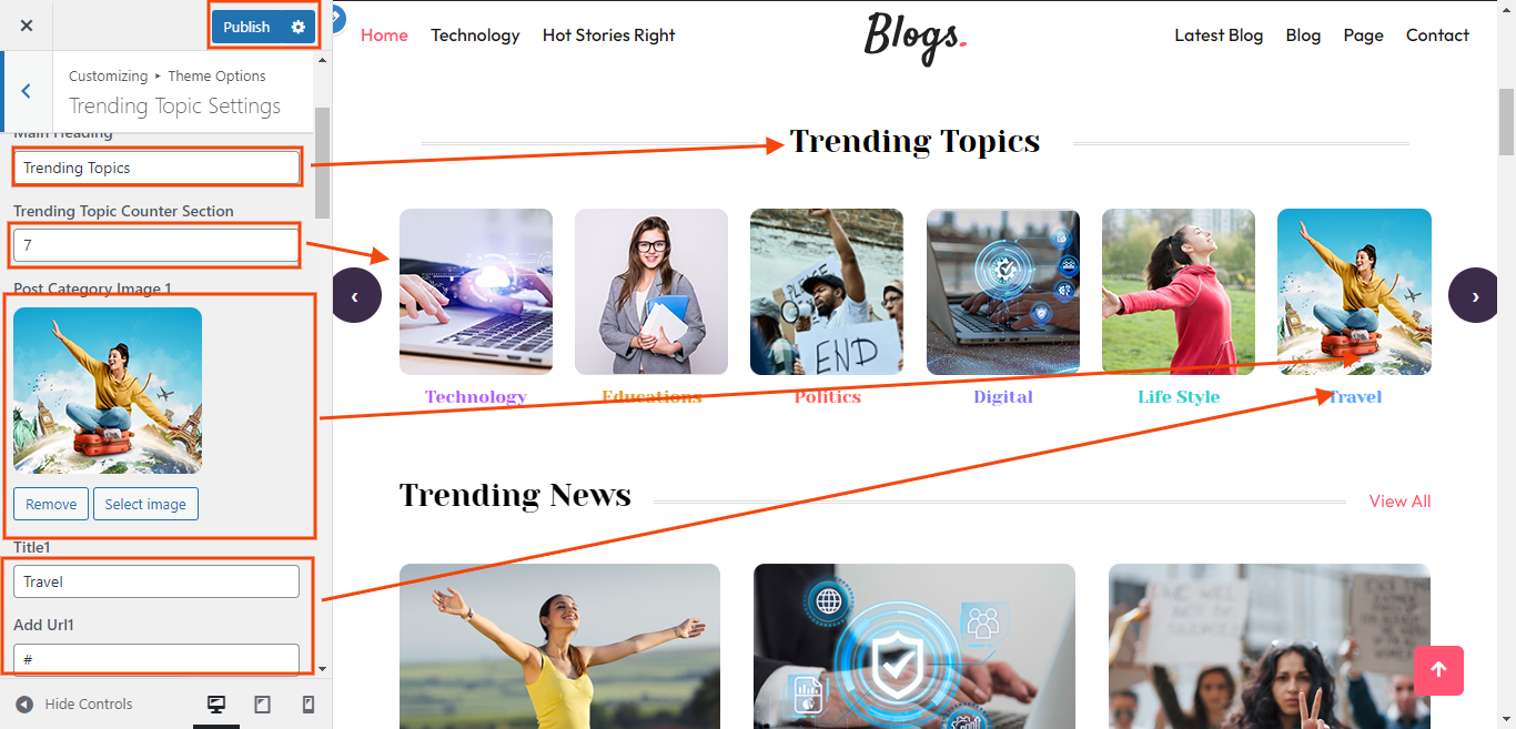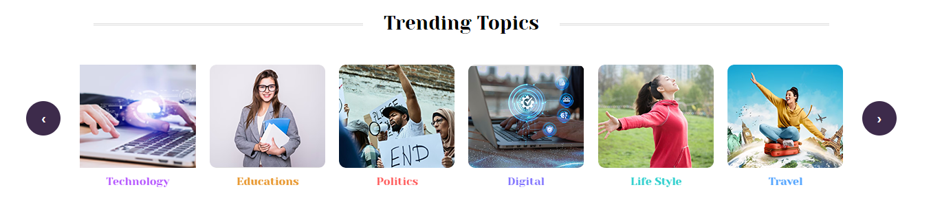 Select number slides to show. You can set heading. You can choose from this options for each Trending Topic option.