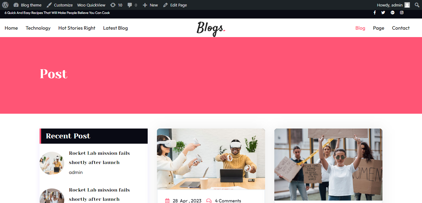 In order to proceed with Theme Slider Settings , you can set tab post , follow the instructions given below.