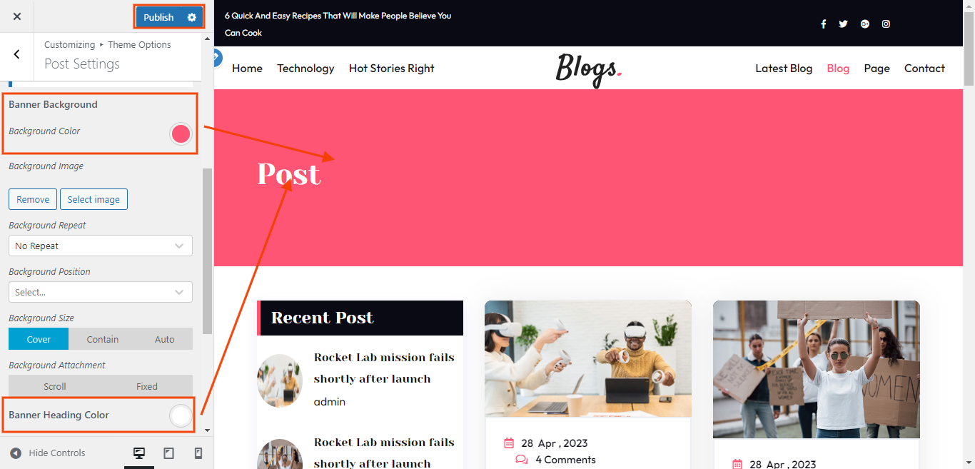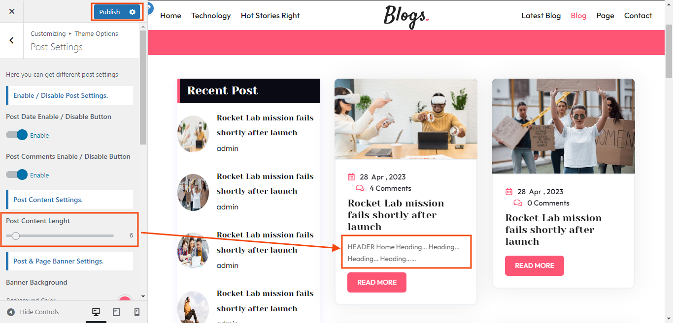 You can set heading and content of section. You can choose from this options in Latest Blog1 settings.