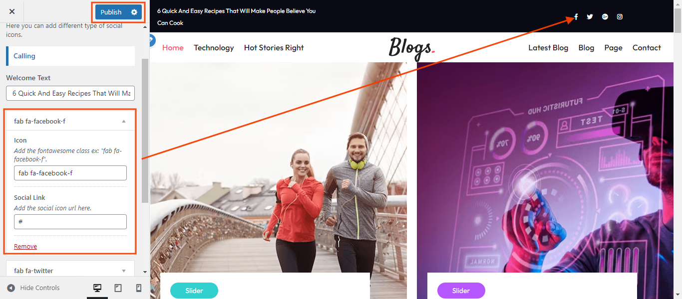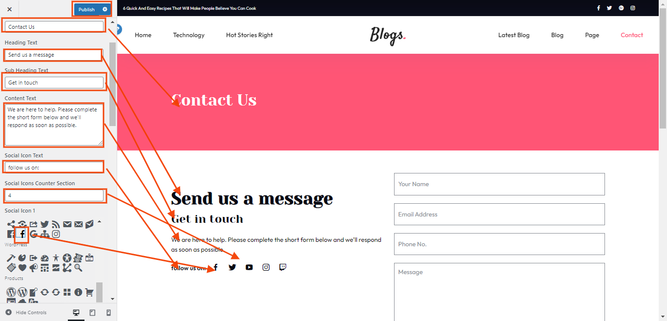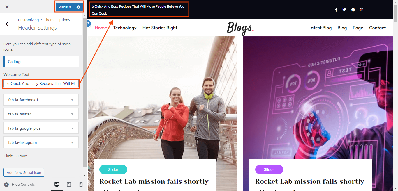 In order to proceed with you can set social icons, text content so follow the instructions given below.