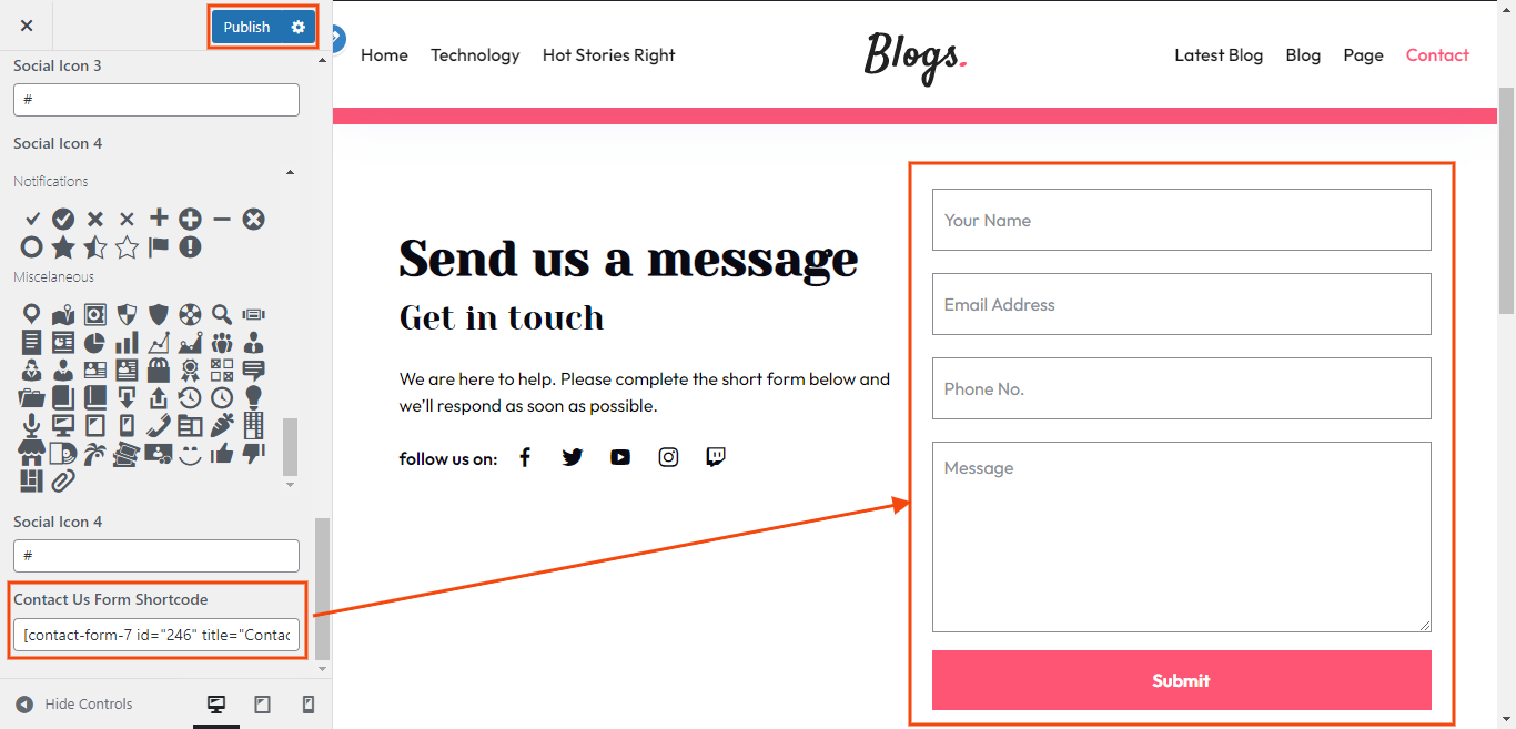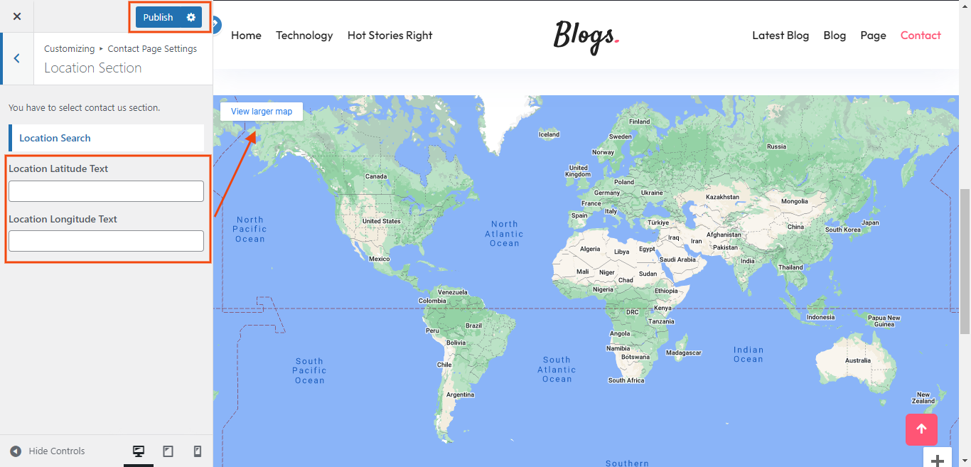 In the Dashboard, go to Appearance >> Customize >> Contact Page Settings >> Contact Form and Location Section