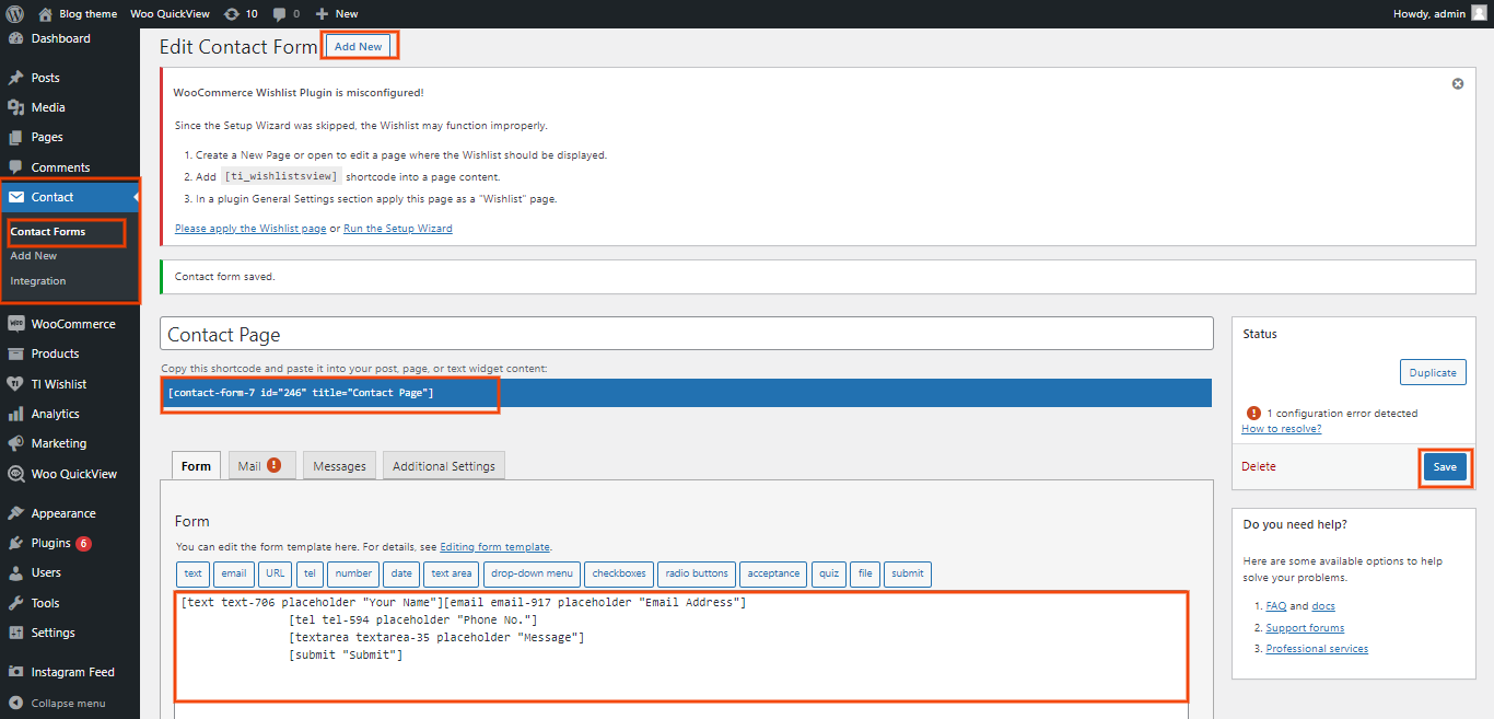 Scroll to Form and give this new contact form a name. You can make modifications to contact form template from here.