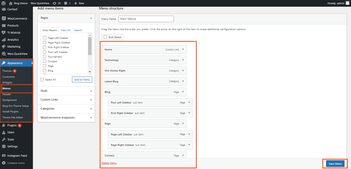 From the 'Appearance' menu on the left-hand side of the Dashboard, select the 'Menus' option to bring up the Menu Editor.