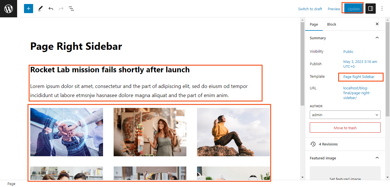 The options of this page template (like sections content, images and number of posts they display) can be controlled it.