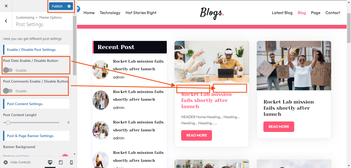 You can Enable / Disable post of admin, comments and date. You can choose from this options for each Post Settings.
