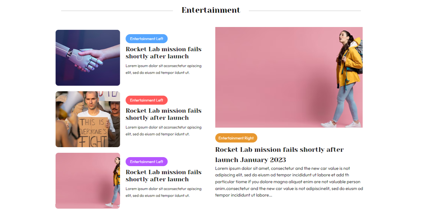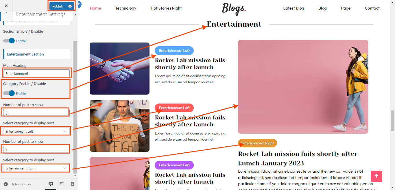Select the number of posts to view. You have the choice of picking Category. You can choose from this options for each Entertainment Settings.