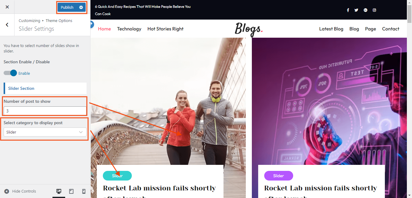 In the Dashboard, go to Appearance >> Customize >> Theme Options >> Hot Stories Settings