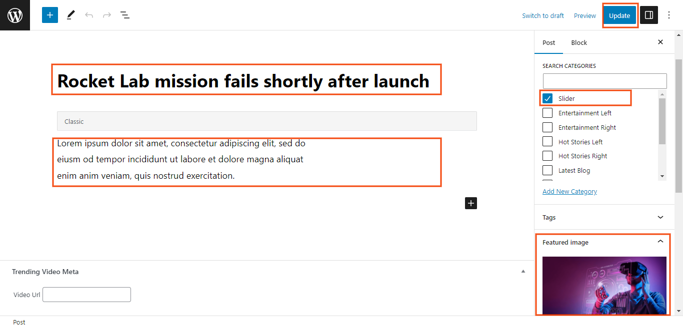 In order to proceed with Theme Trending News Settings , you can set tab post , follow the instructions given below.