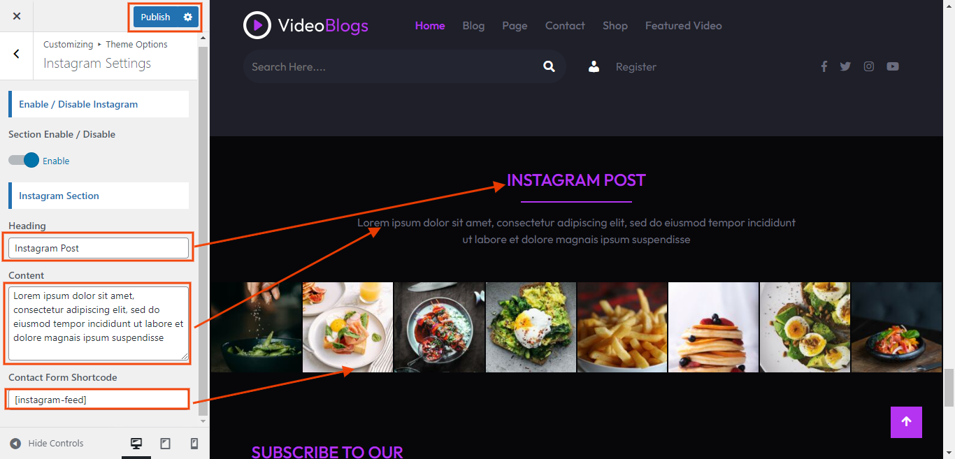 You can set heading and content for section. You can also set the icon for each Instagram settings