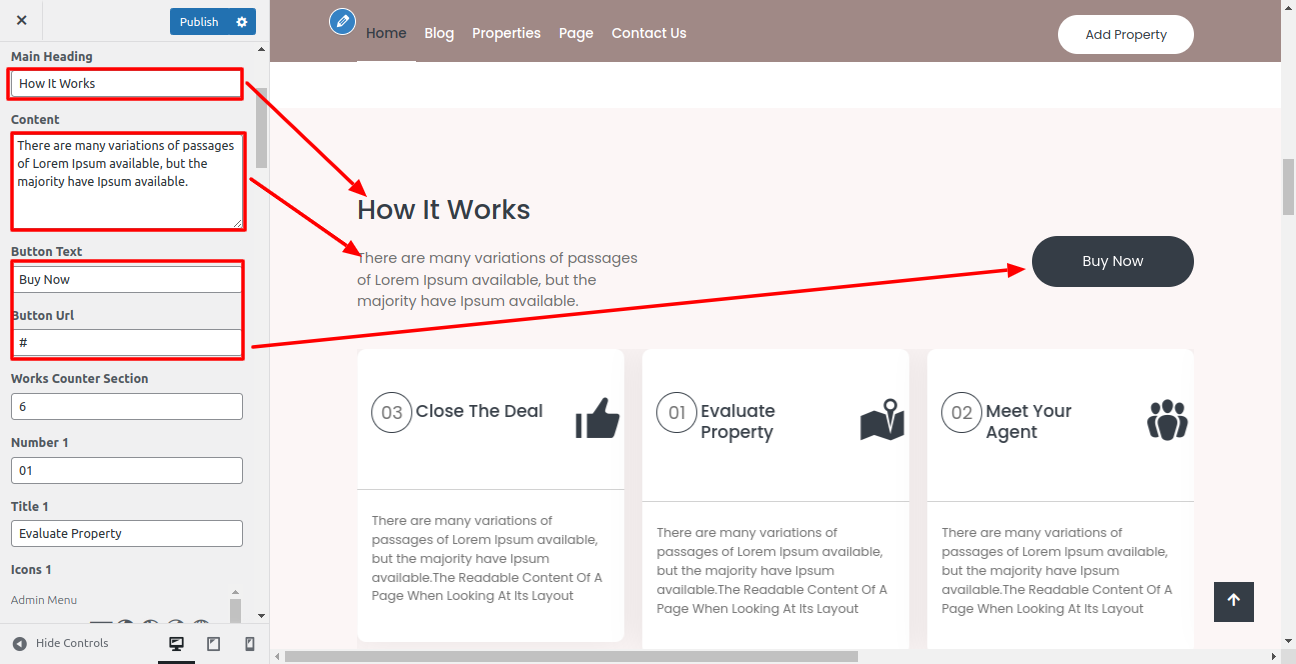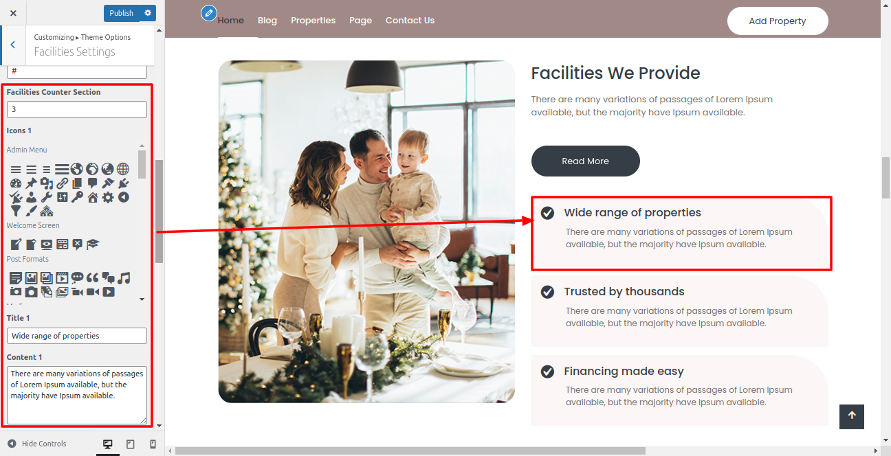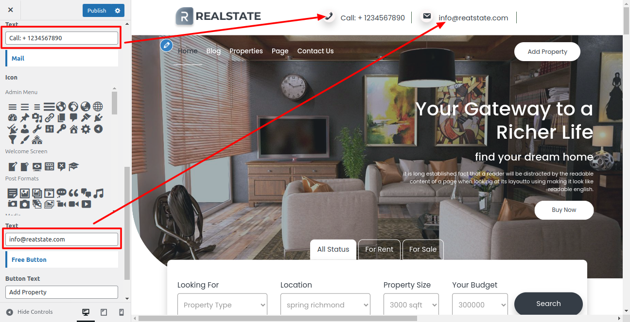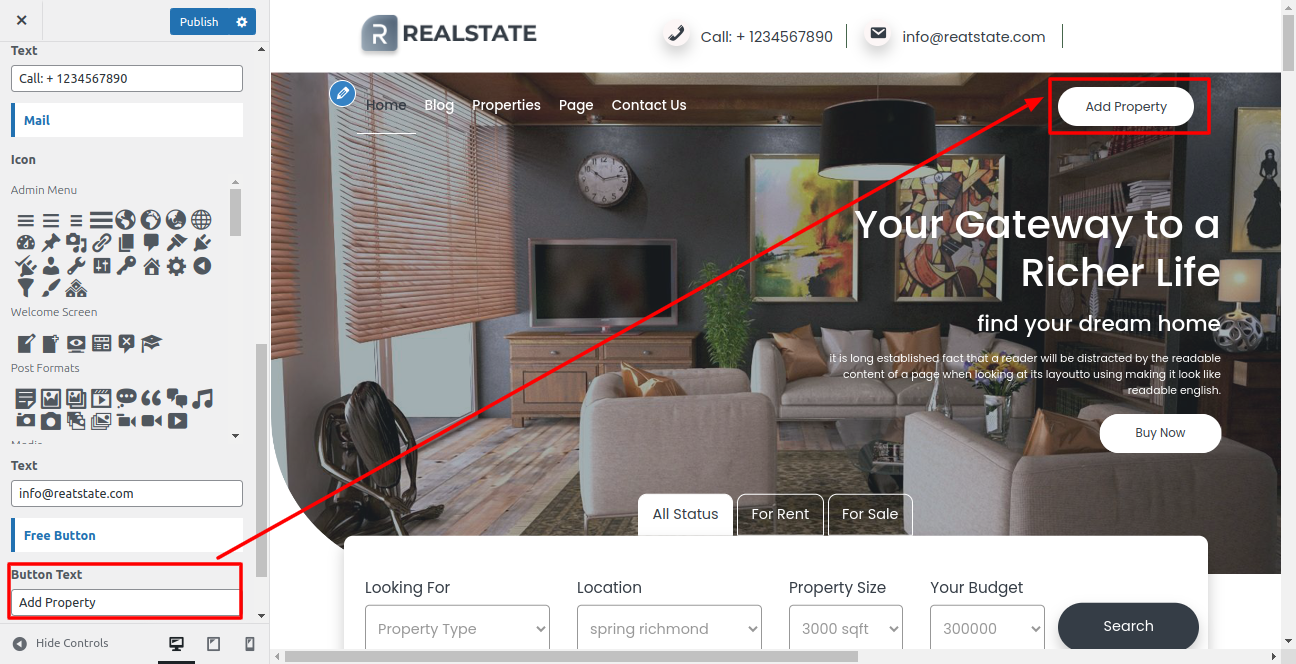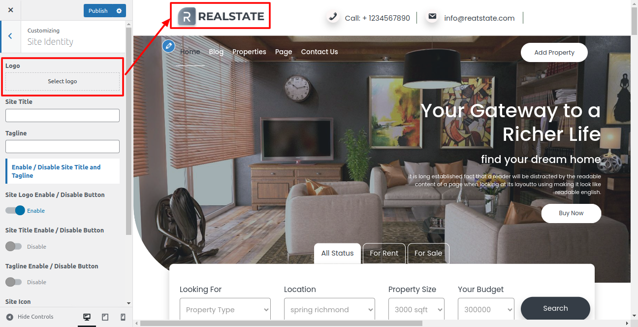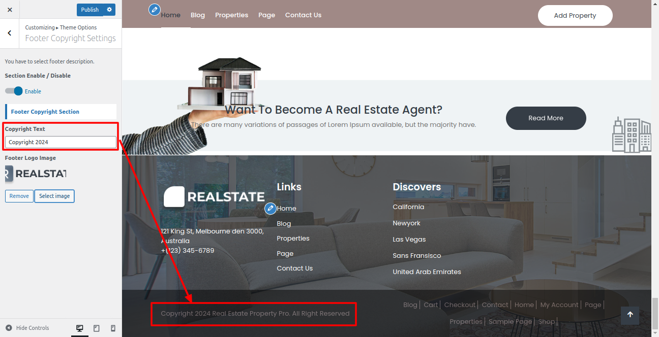 In the Dashboard, go to Appearance >> Real Estate Property Pro Themes Configure