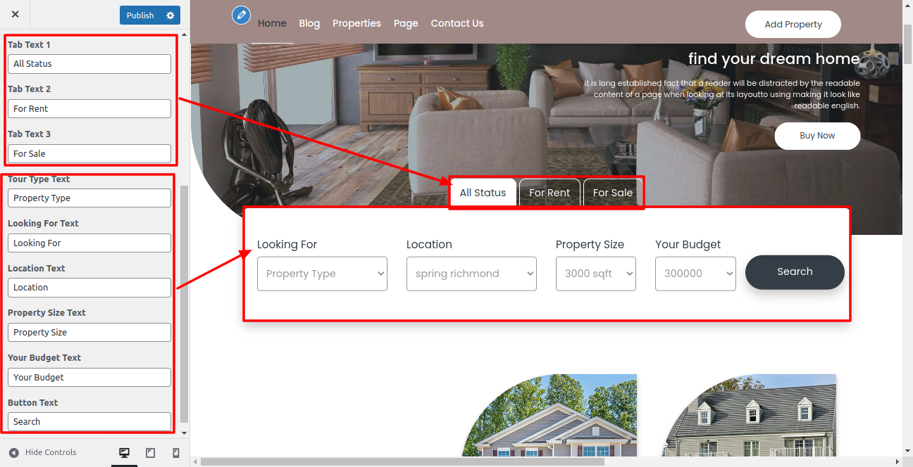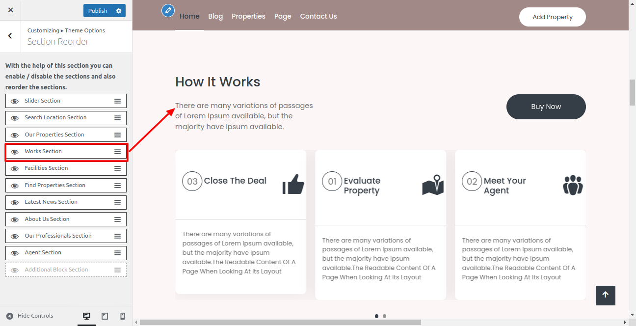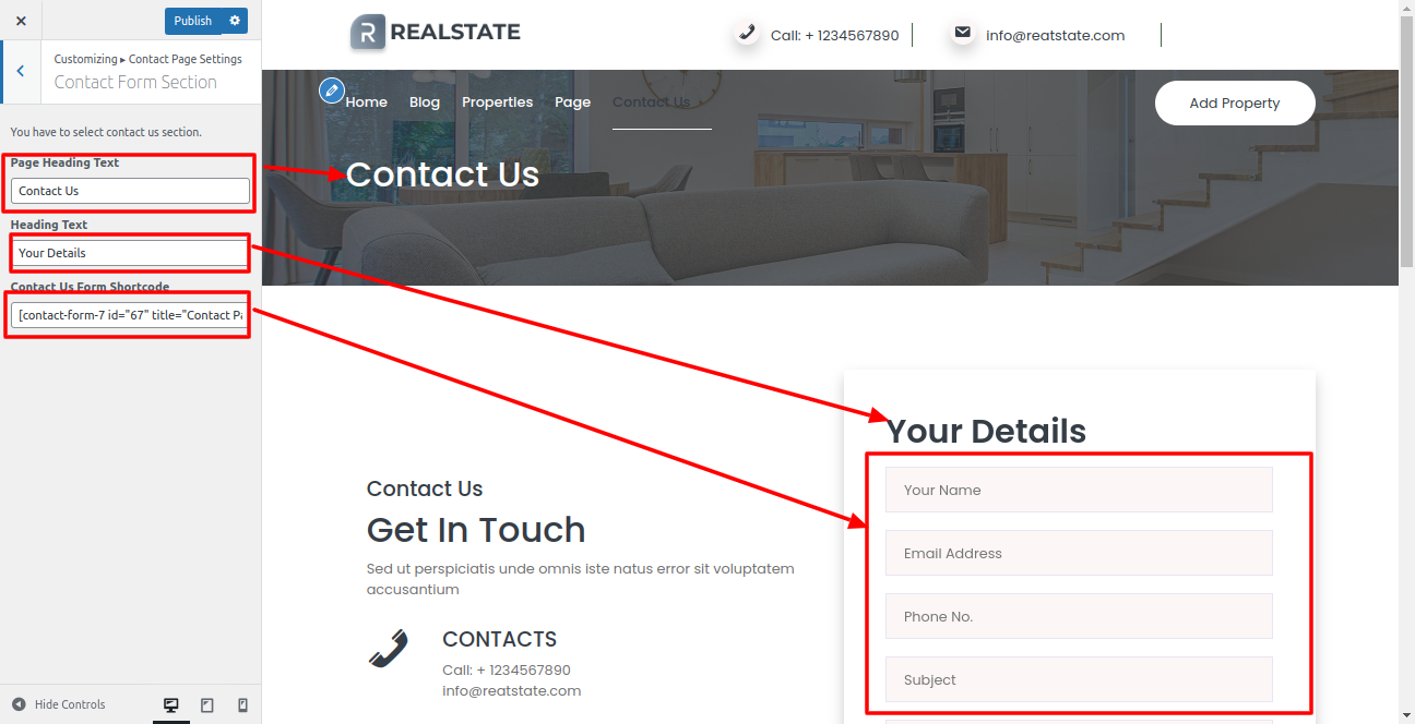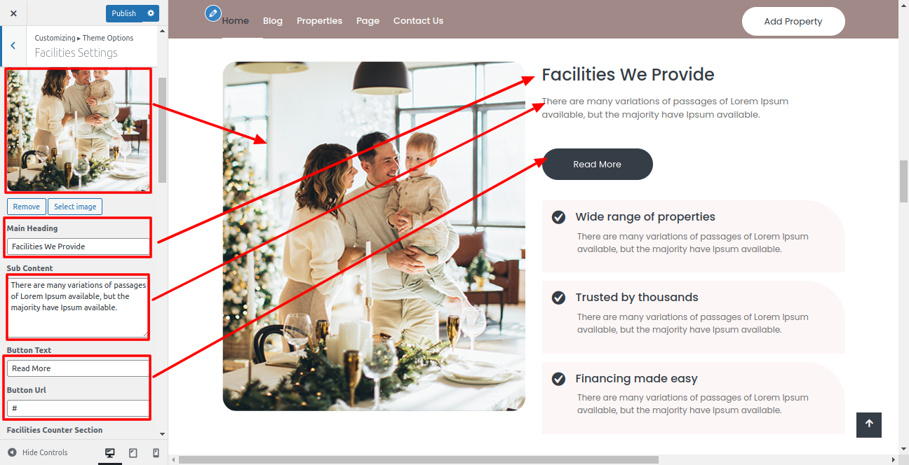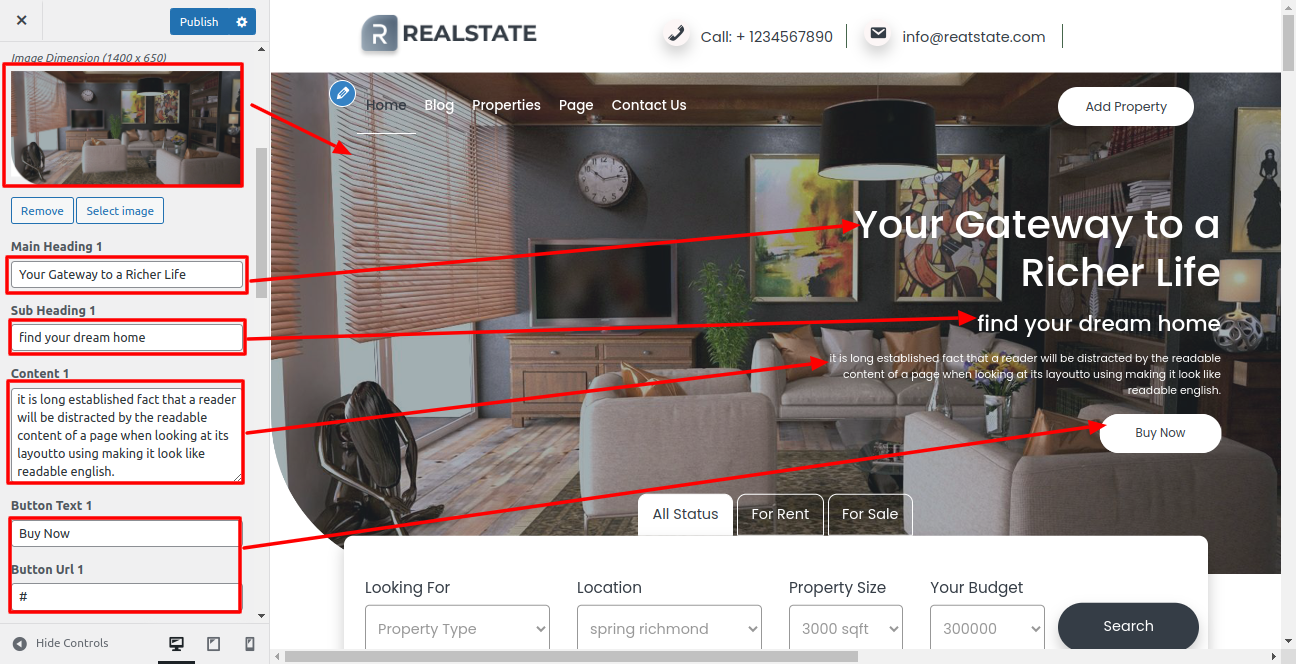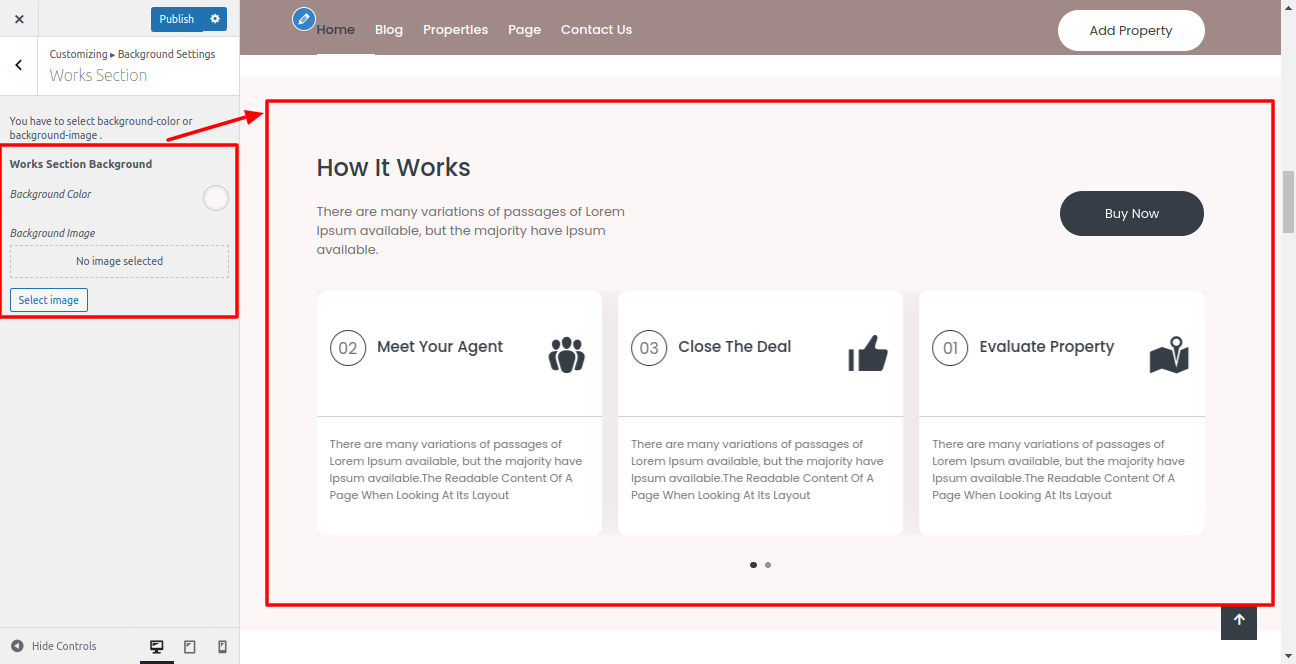 In the Dashboard, go to Appearance >> Real Estate Property Pro Themes Configure