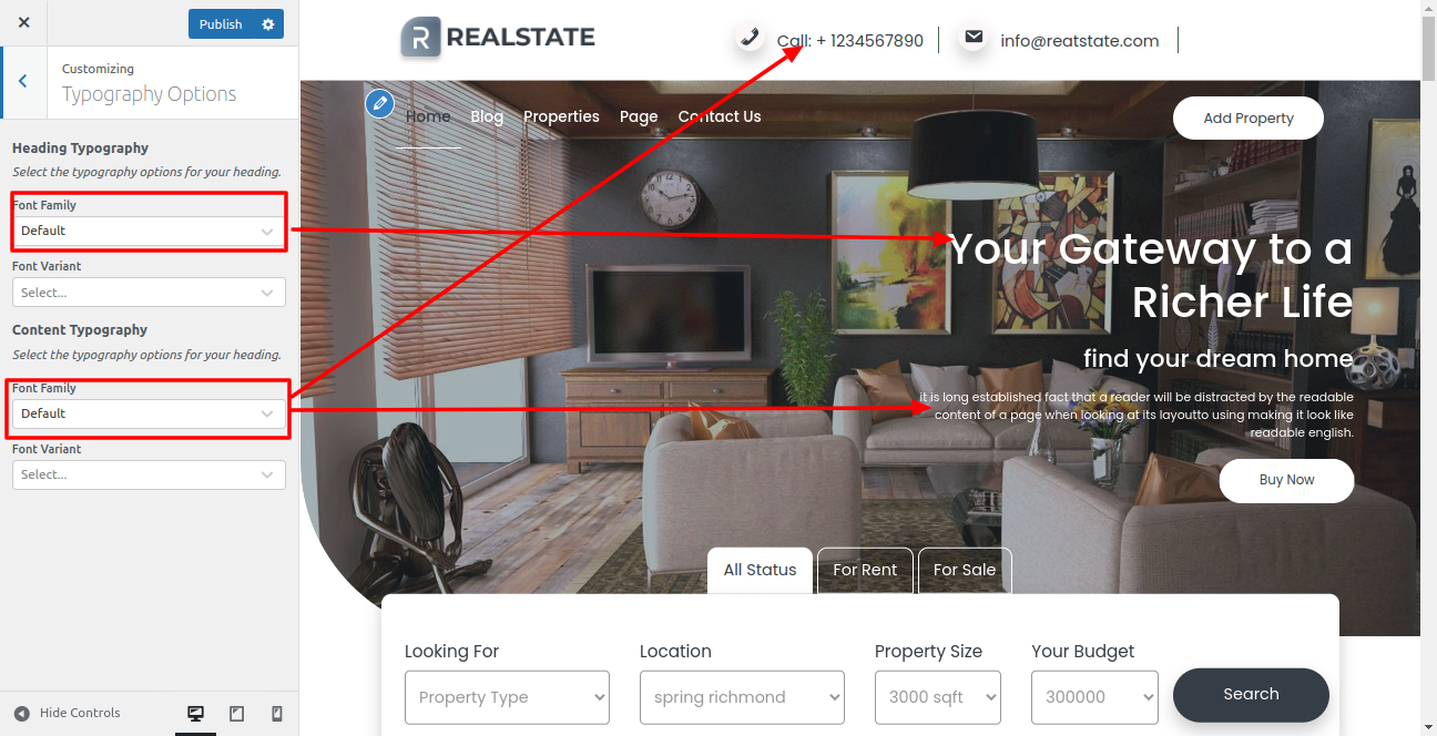 To proceed with the Typography Options, you can change complete font style just one click. following the instructions provided below.