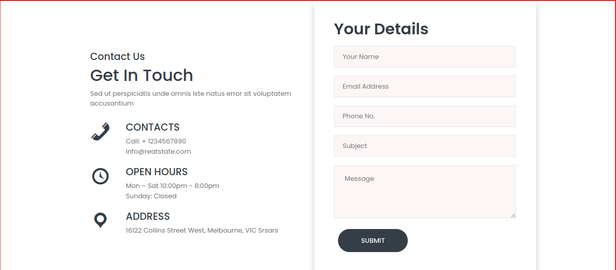 In the Dashboard, go to Appearance >> Customize >> Contact Page Settings >> Contact Page Section