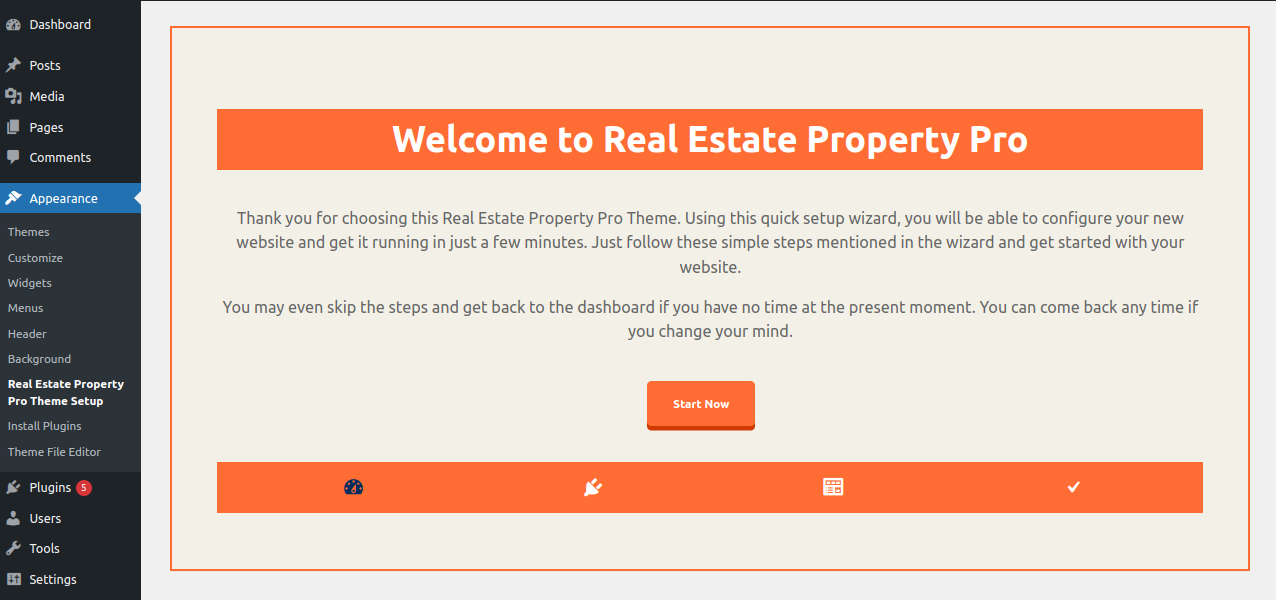 Once you are on the Real Estate Property Pro themes Configure, click on the start button.