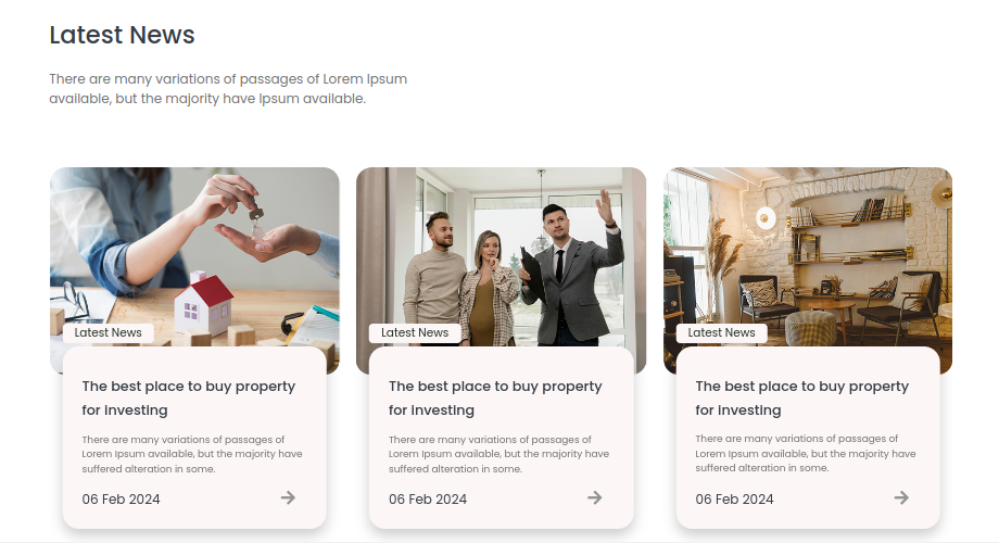 In Dashboard Our Properties section will show in which you can add our properties section.