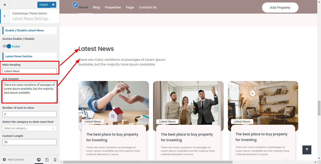 In the Dashboard, go to Appearance >> Customize >> Theme Options >> Latest News Settings