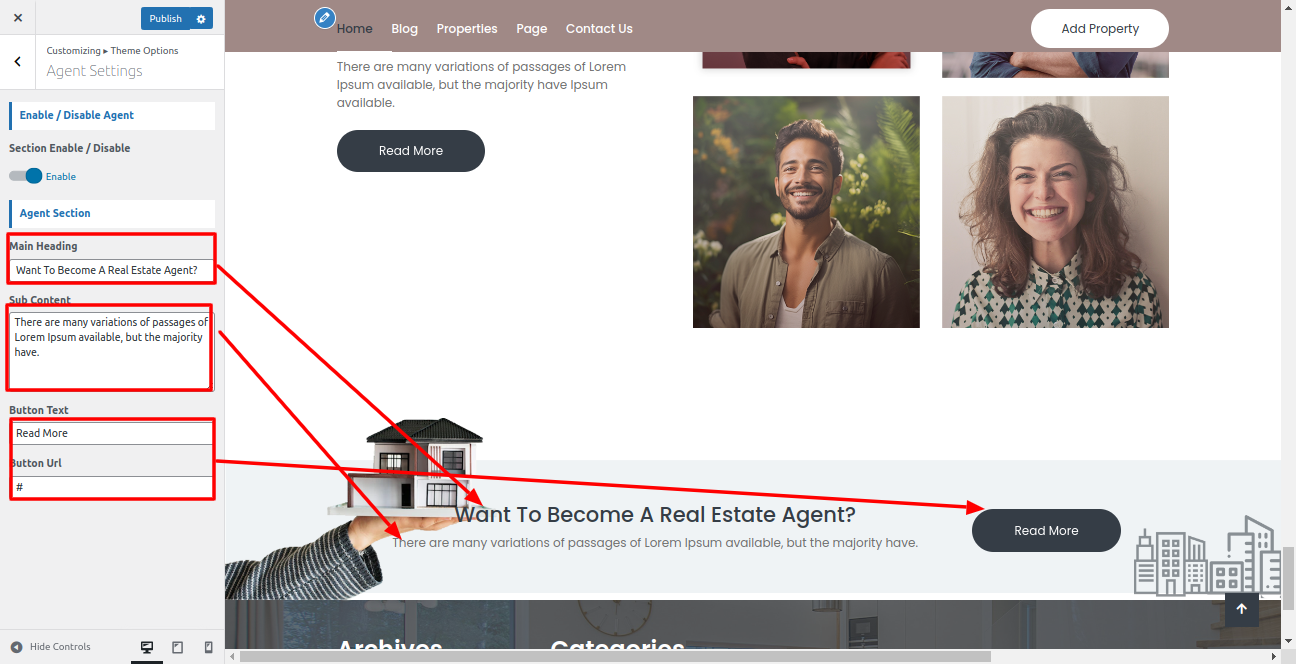 In the Dashboard, go to Appearance >> Customize >> Theme Options >> Agents Settings