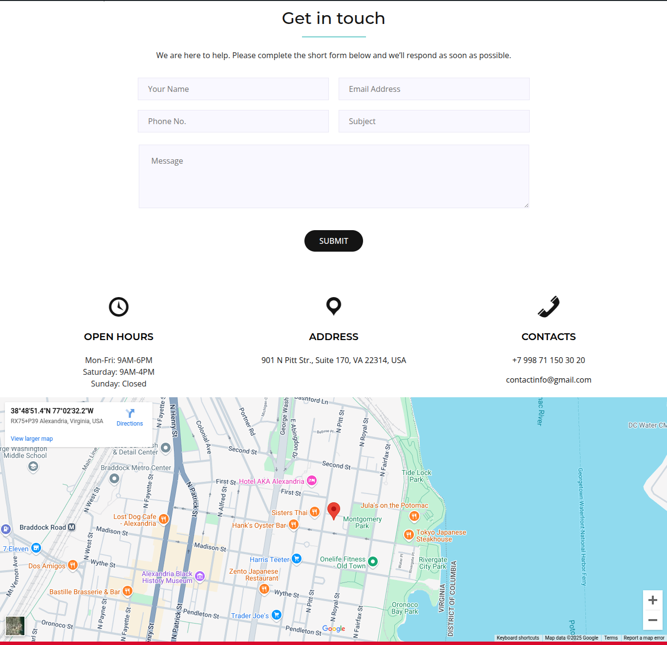 In the Dashboard, go to Appearance >> Customize >> Contact Page Settings >> Location Section