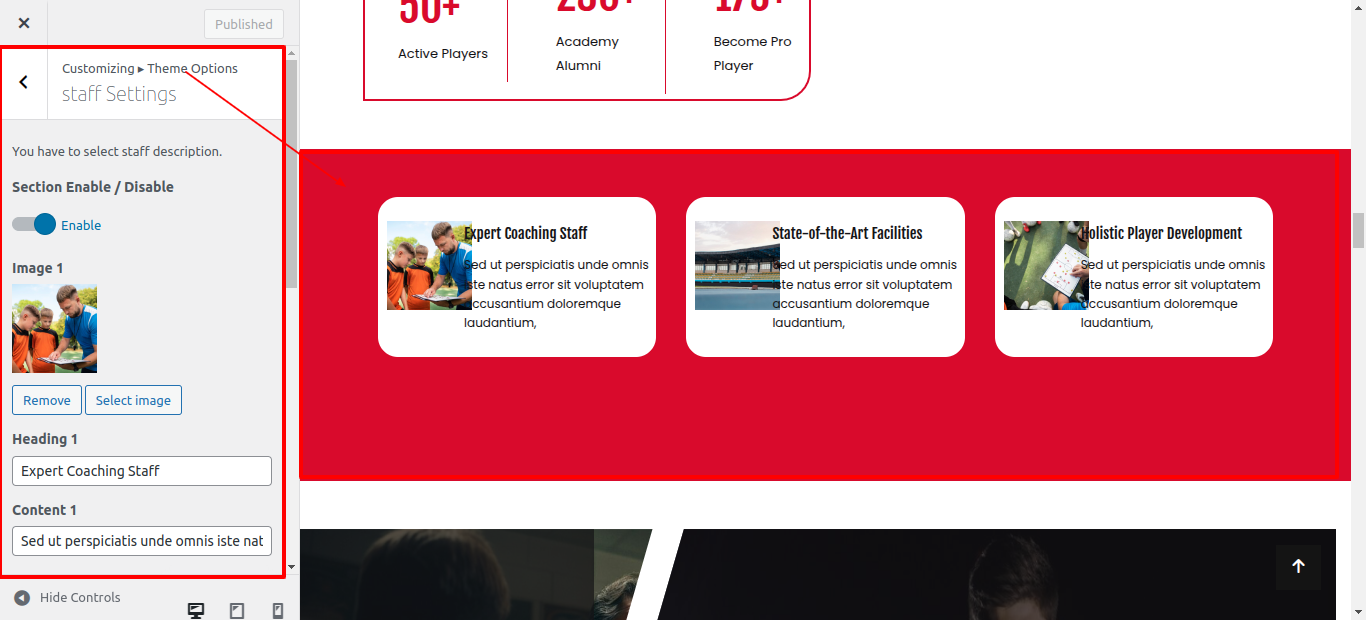 In the Dashboard, go to Appearance >> Customize >> Theme Options >> staff Settings