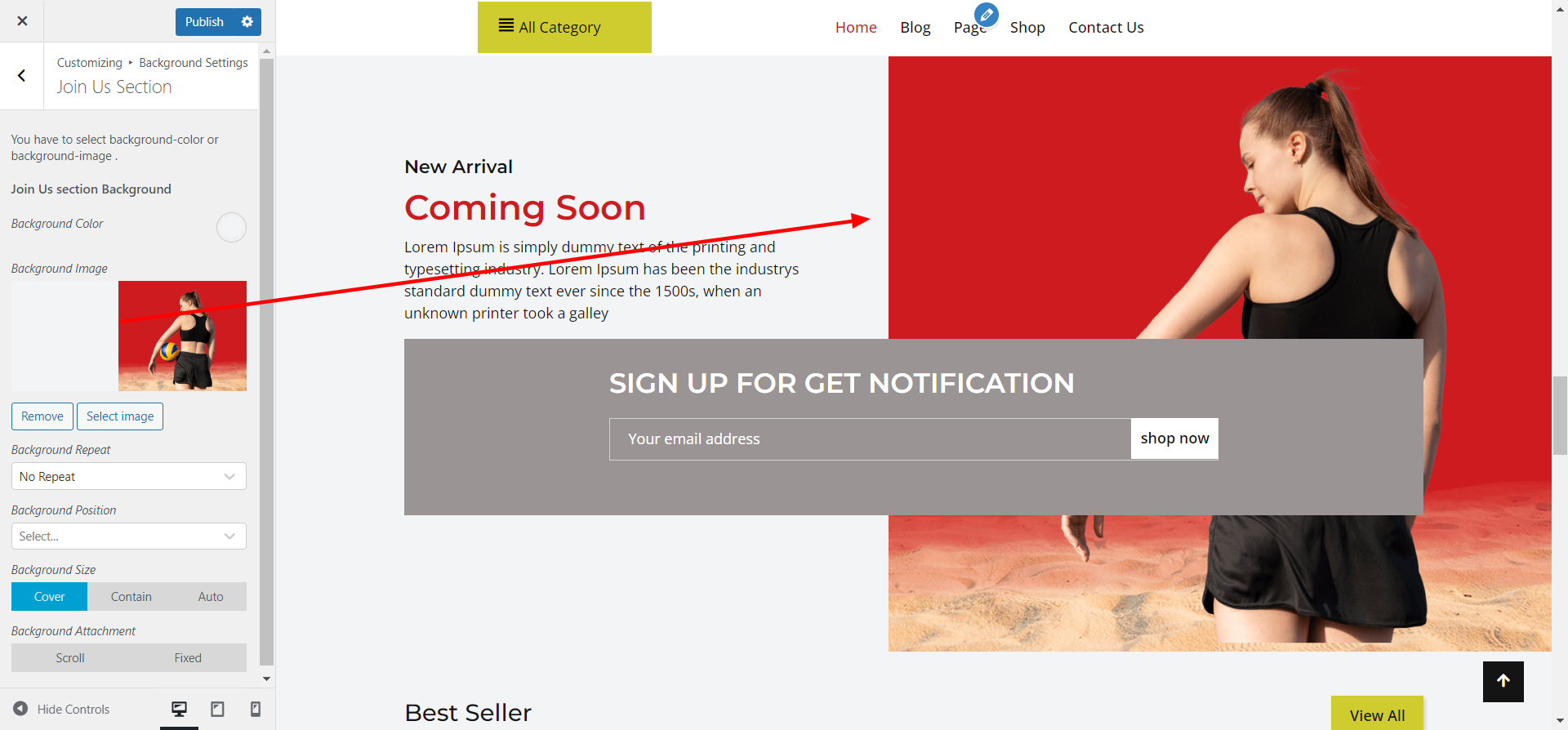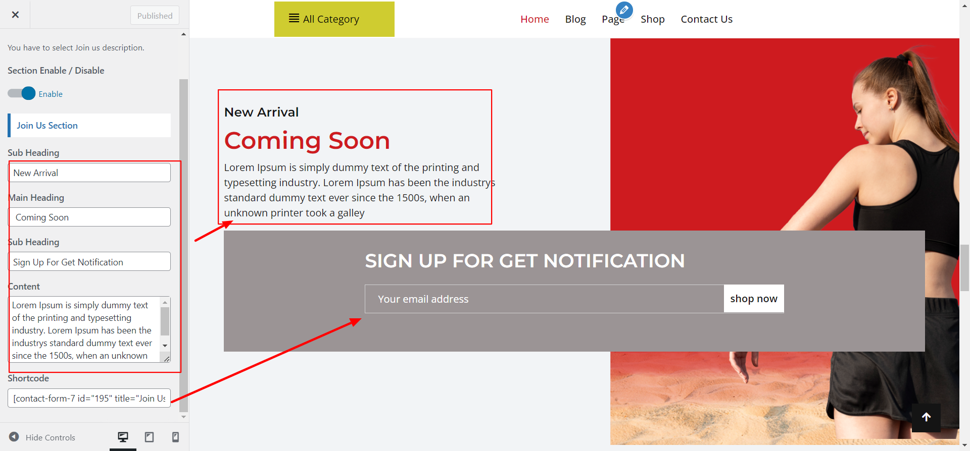 You can set heading and content of section. You can choose from this options for each Join Us settings.