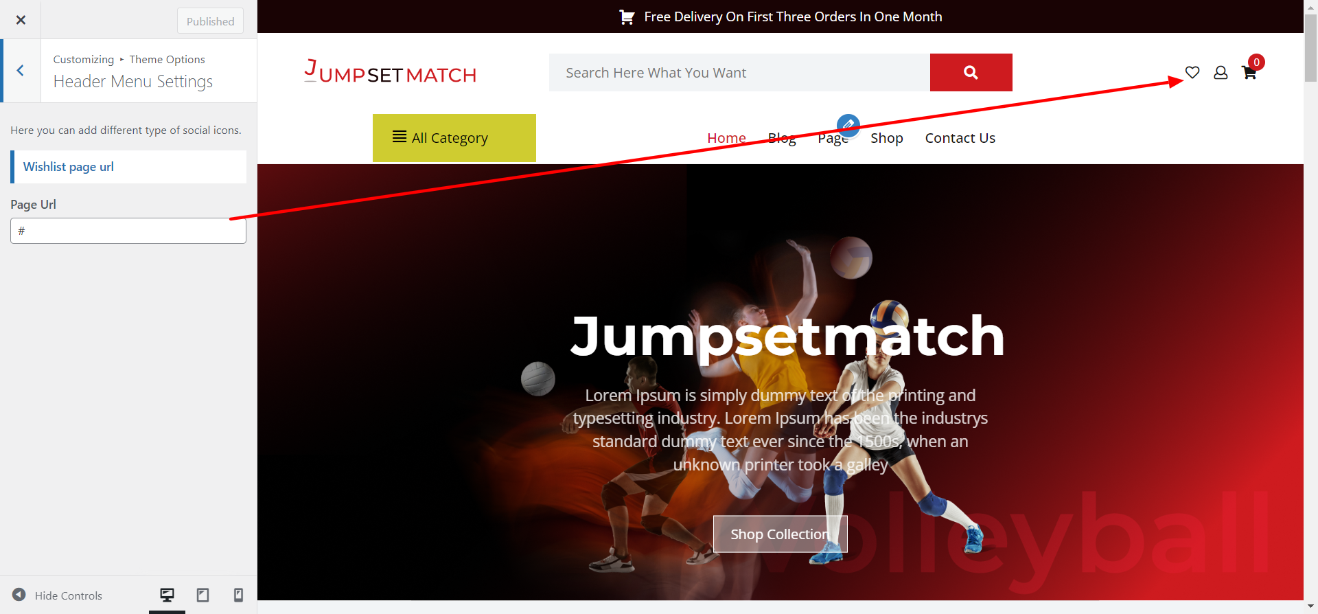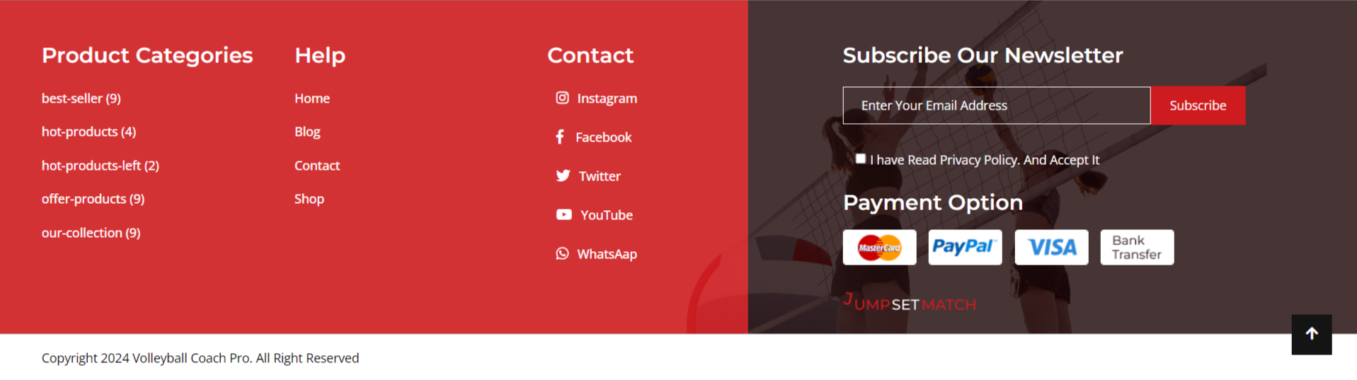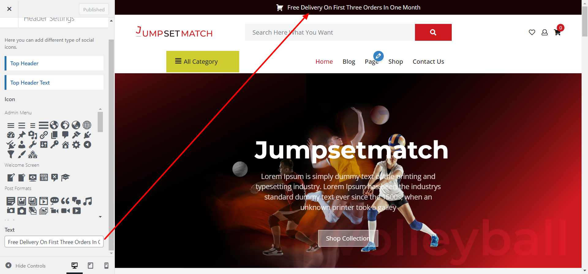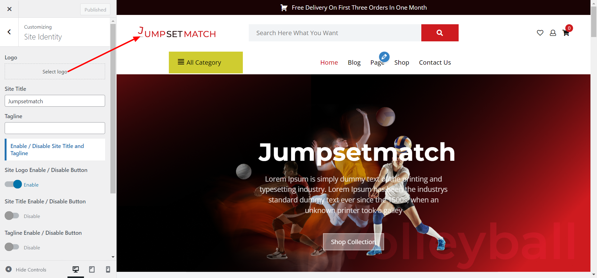 In the Dashboard, go to Appearance >> Customize >> Theme Options >> Online Volleyball Training Settings