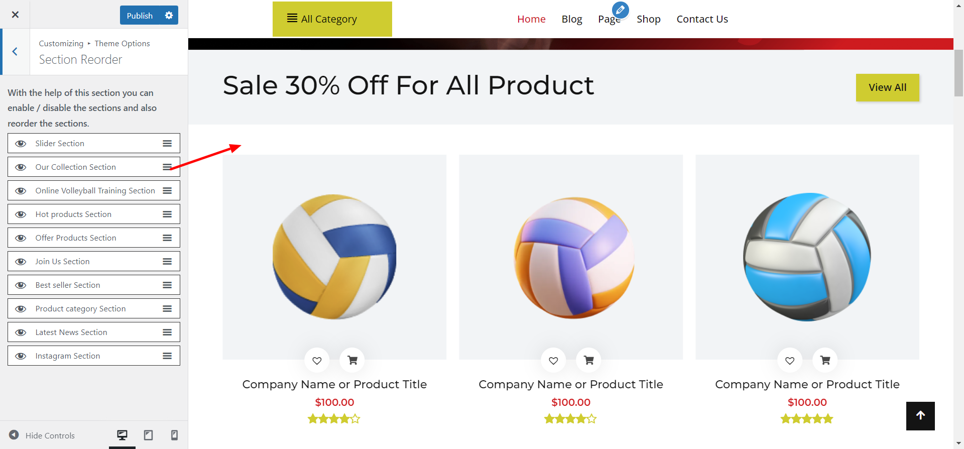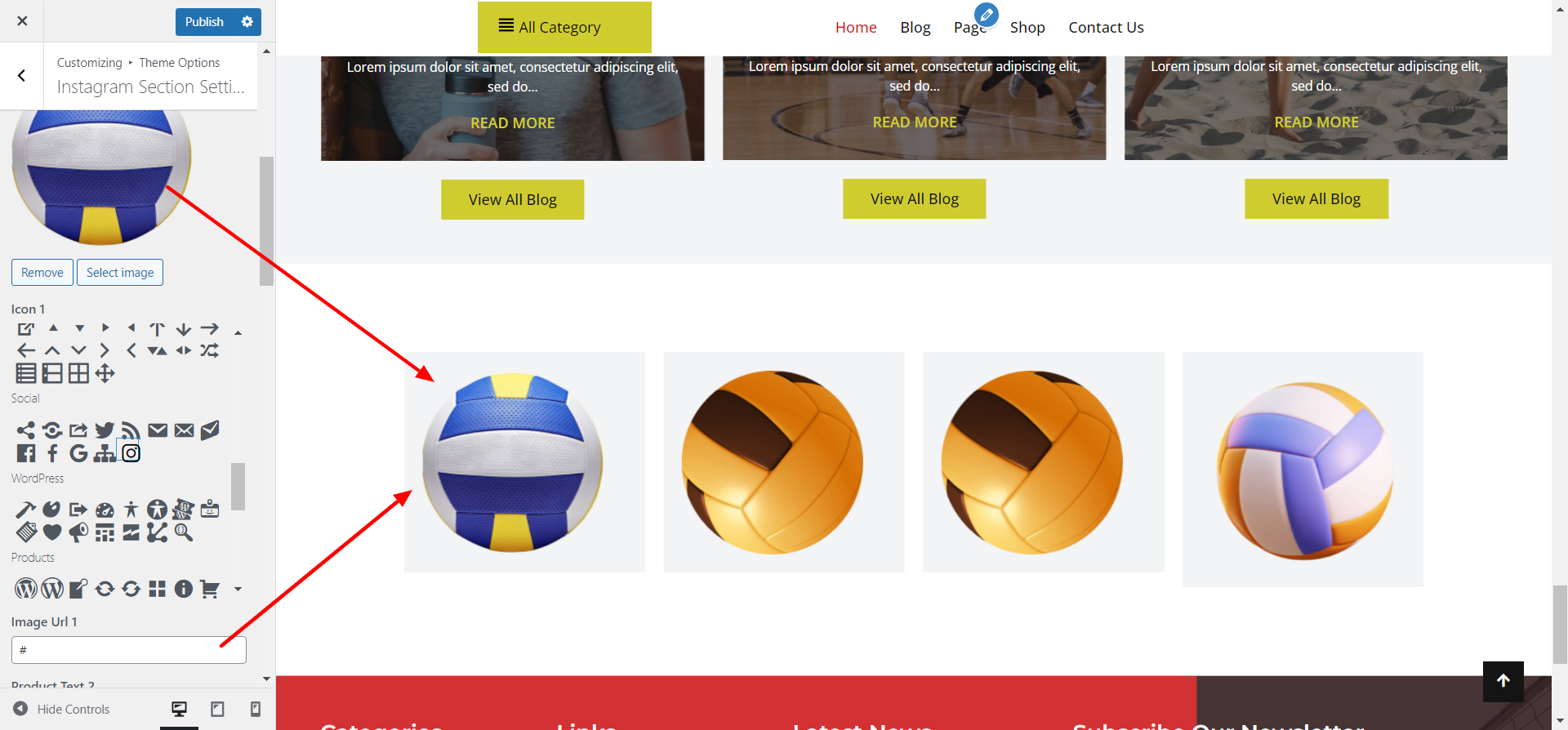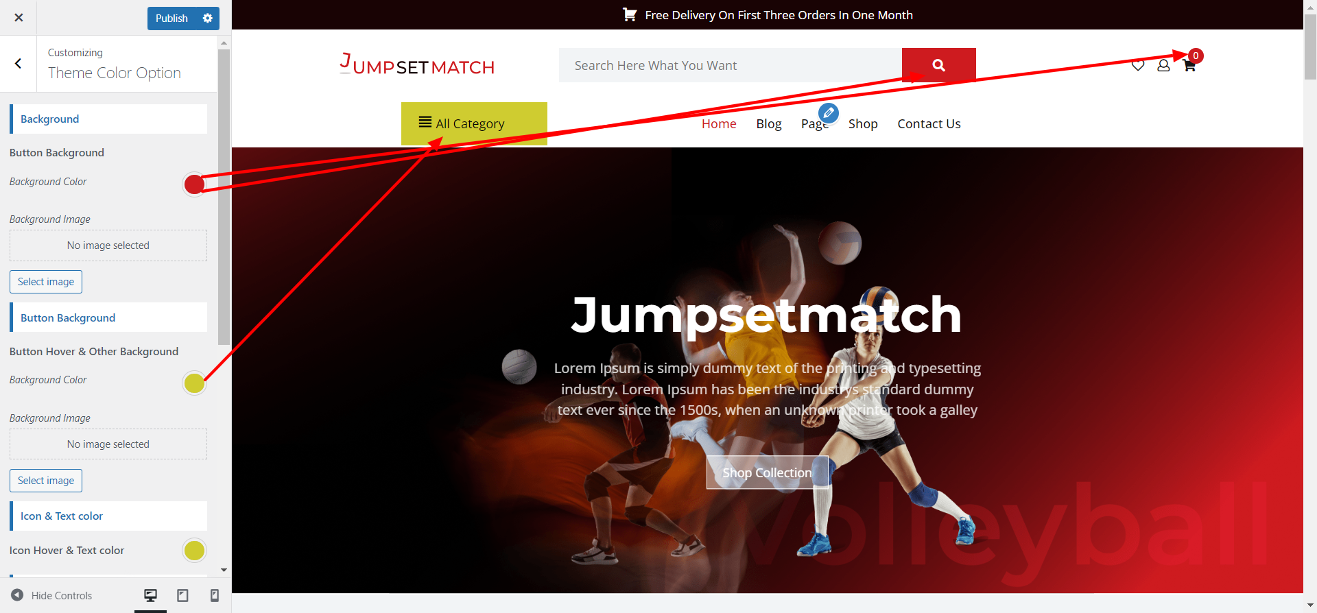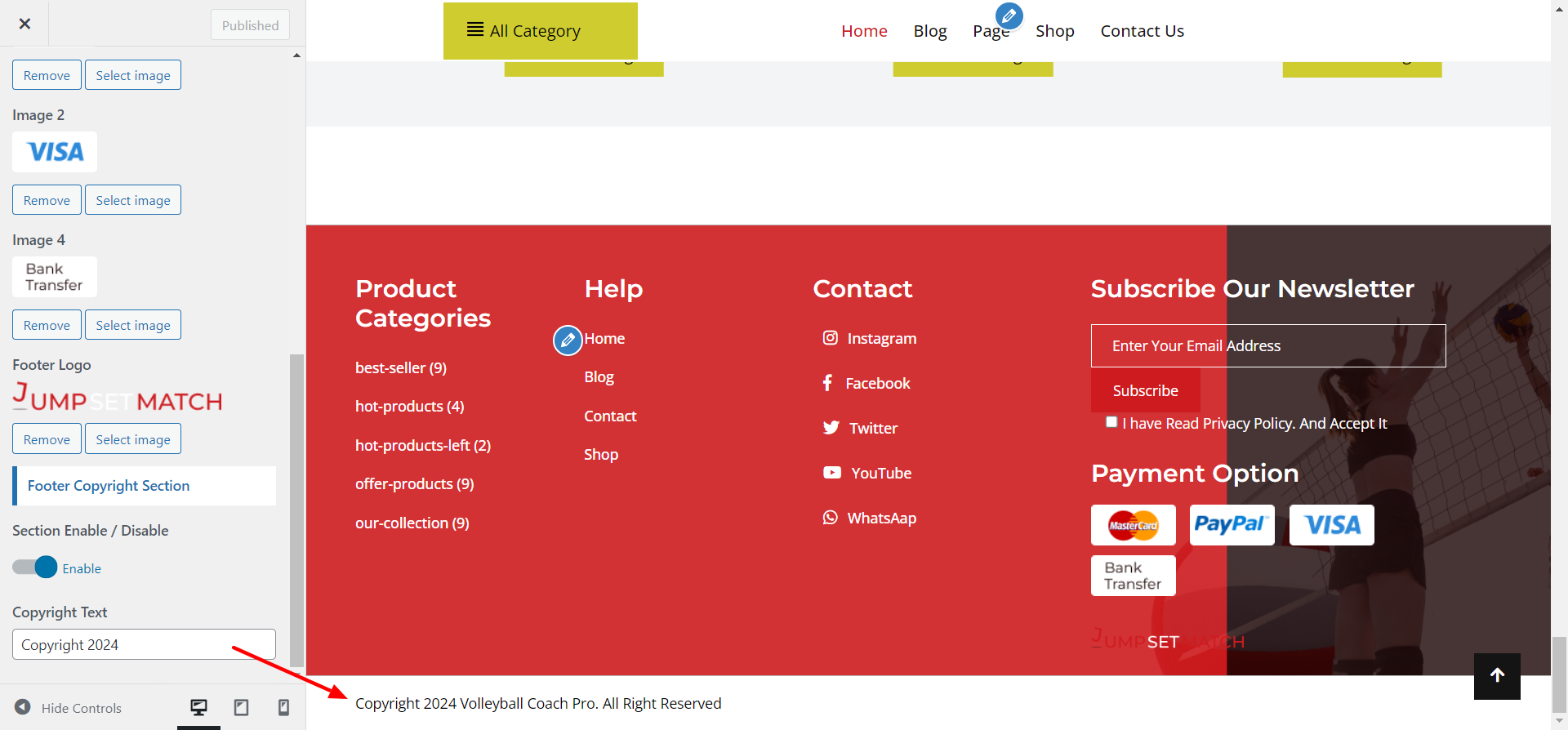 In the Dashboard, go to Appearance >> Customize >> Theme Options >> Online Volleyball Training Settings