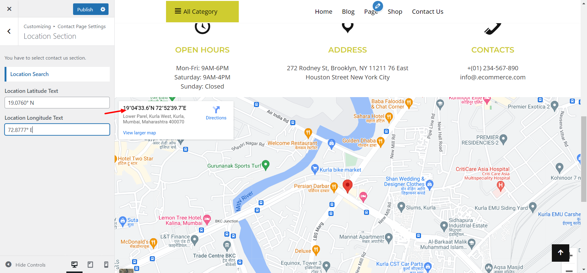 You can set heading, content and location. You can choose from this options for each Contact Page Settings.